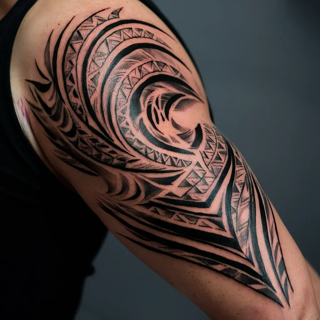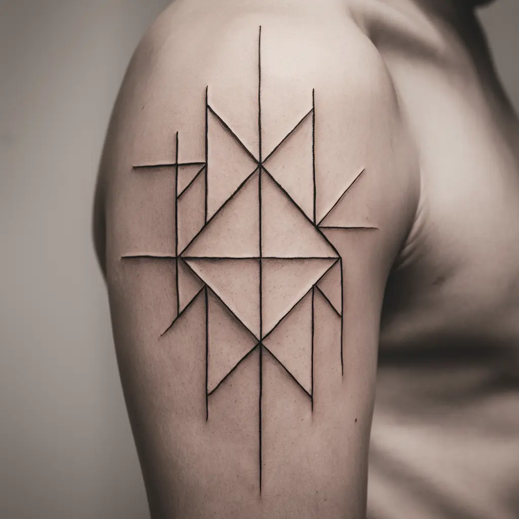 Personalized Description: Geometric tattoos use clean, sharp lines to create striking patterns. For an upper arm tattoo, this style can include everything from mandalas to 3D shapes that can wrap around the arm.