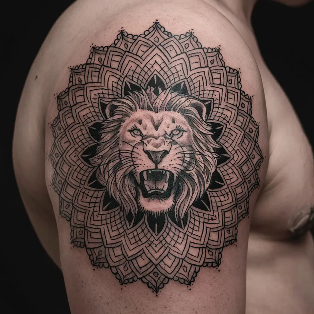 Tattoo Meaning: The lion represents courage, leadership, and strength, while the mandala represents harmony, balance, and spirituality. Together, they make a powerful symbol of personal growth.