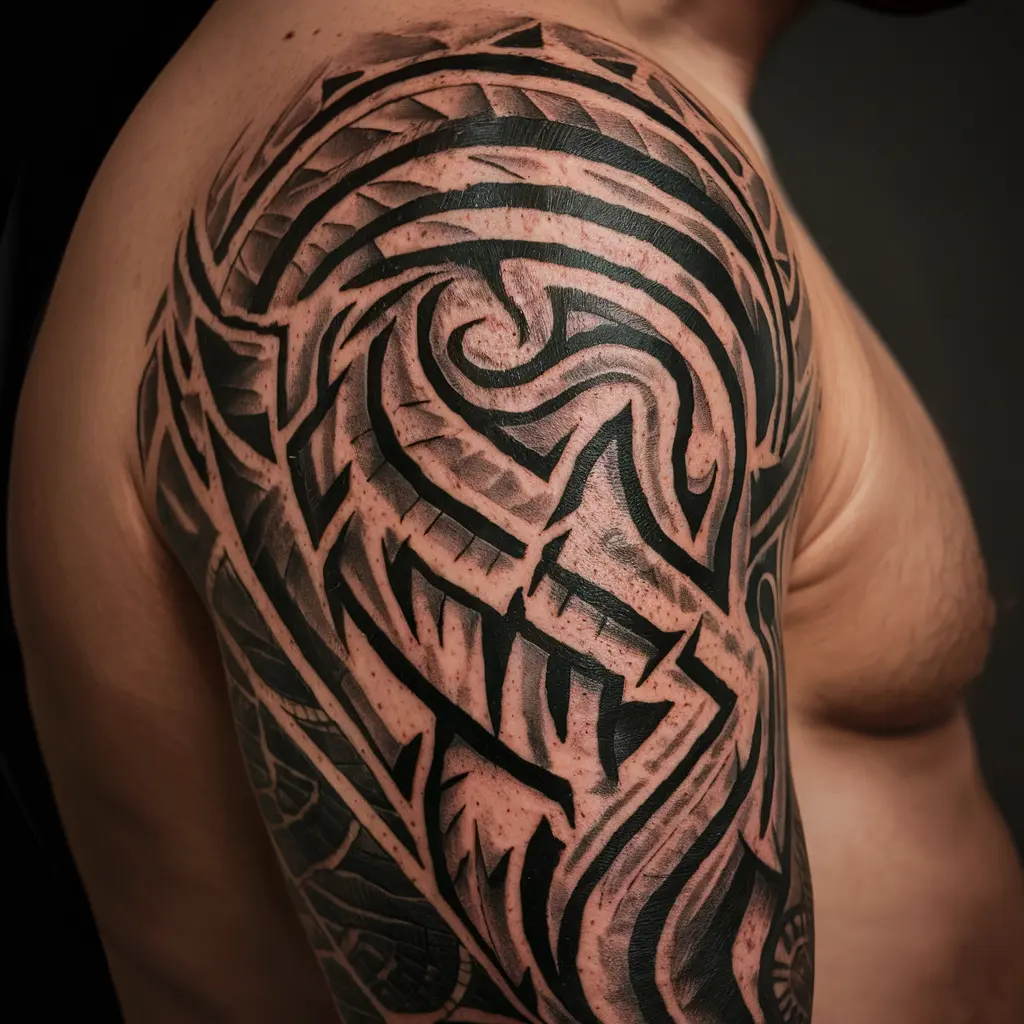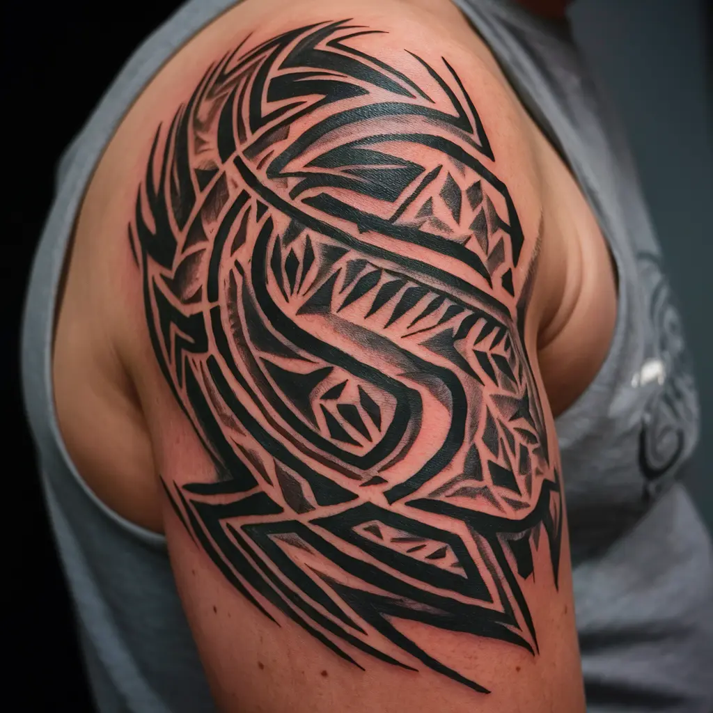 Personalized Description: Tribal tattoos have been around for centuries, and the upper arm is the perfect place to display one. The patterns typically feature bold, black lines that form intricate designs, covering the arm from the shoulder to the elbow.