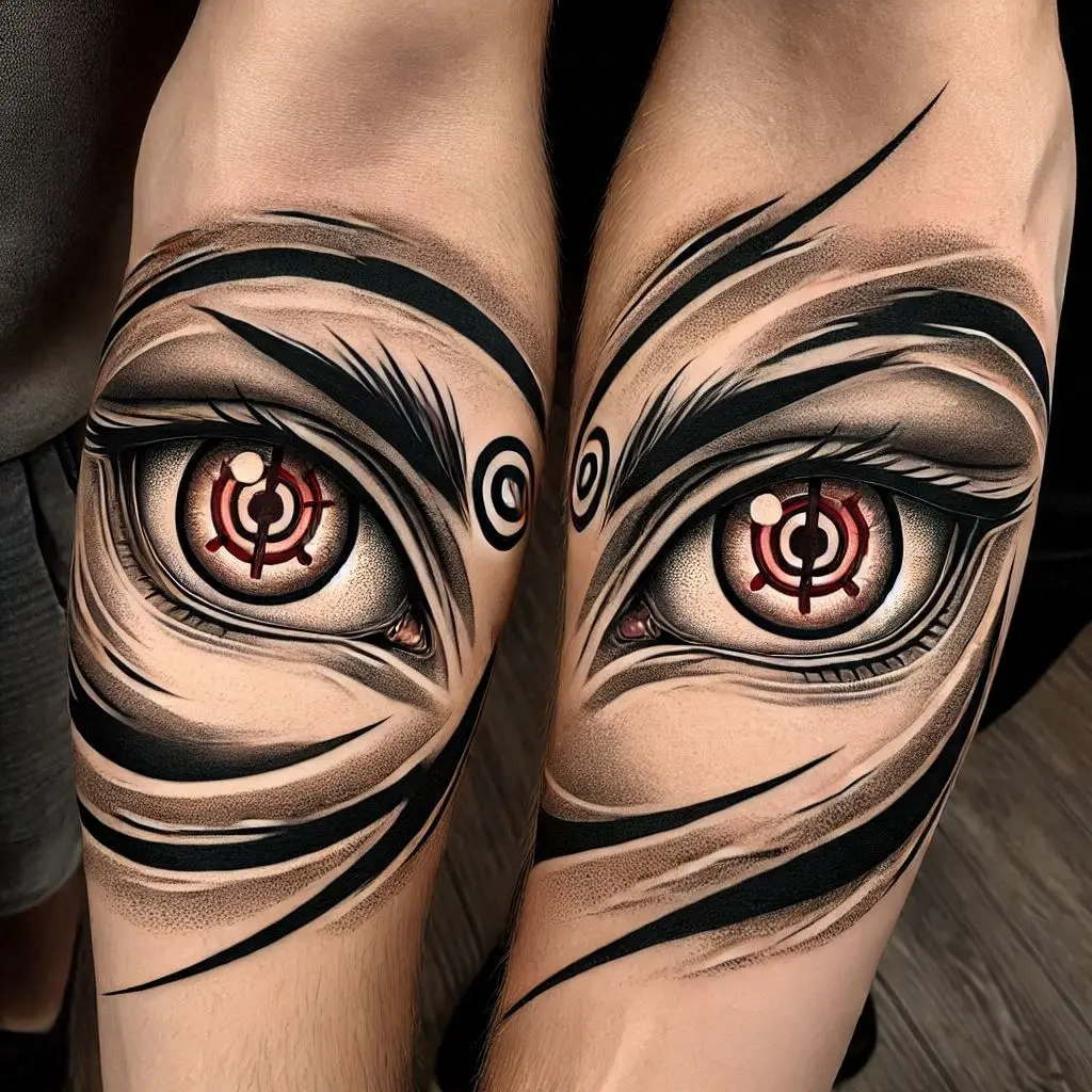 - Itachi and Sasuke Uchiha (Naruto): A matching tattoo of the Sharingan eyes of Itachi and Sasuke, showing the intense bond they share.
