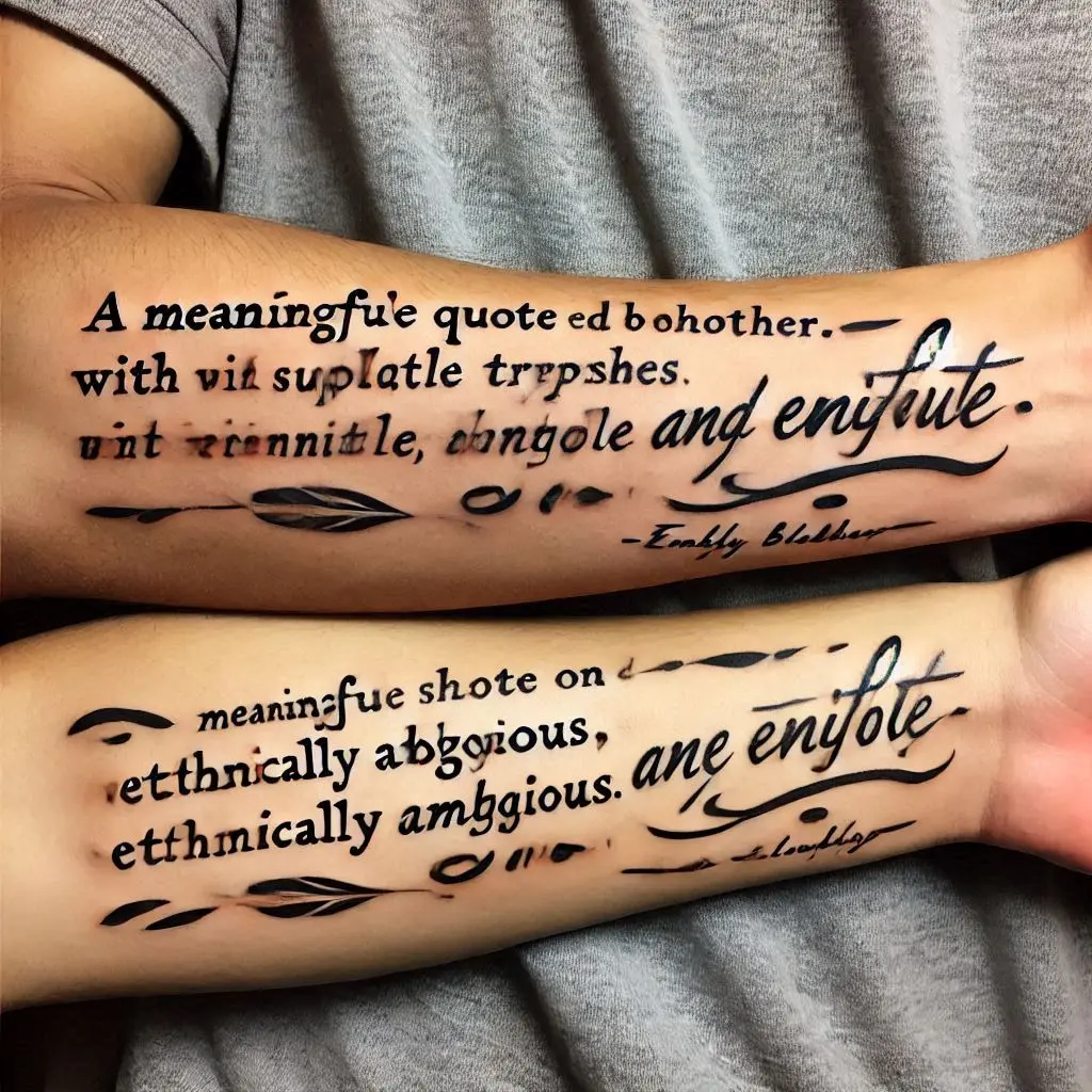 Meaning: A shared quote tattoo represents the thoughts, beliefs, or ideas that connect you and your brother. It’s like a secret code, a bond that no one else understands in the same way.