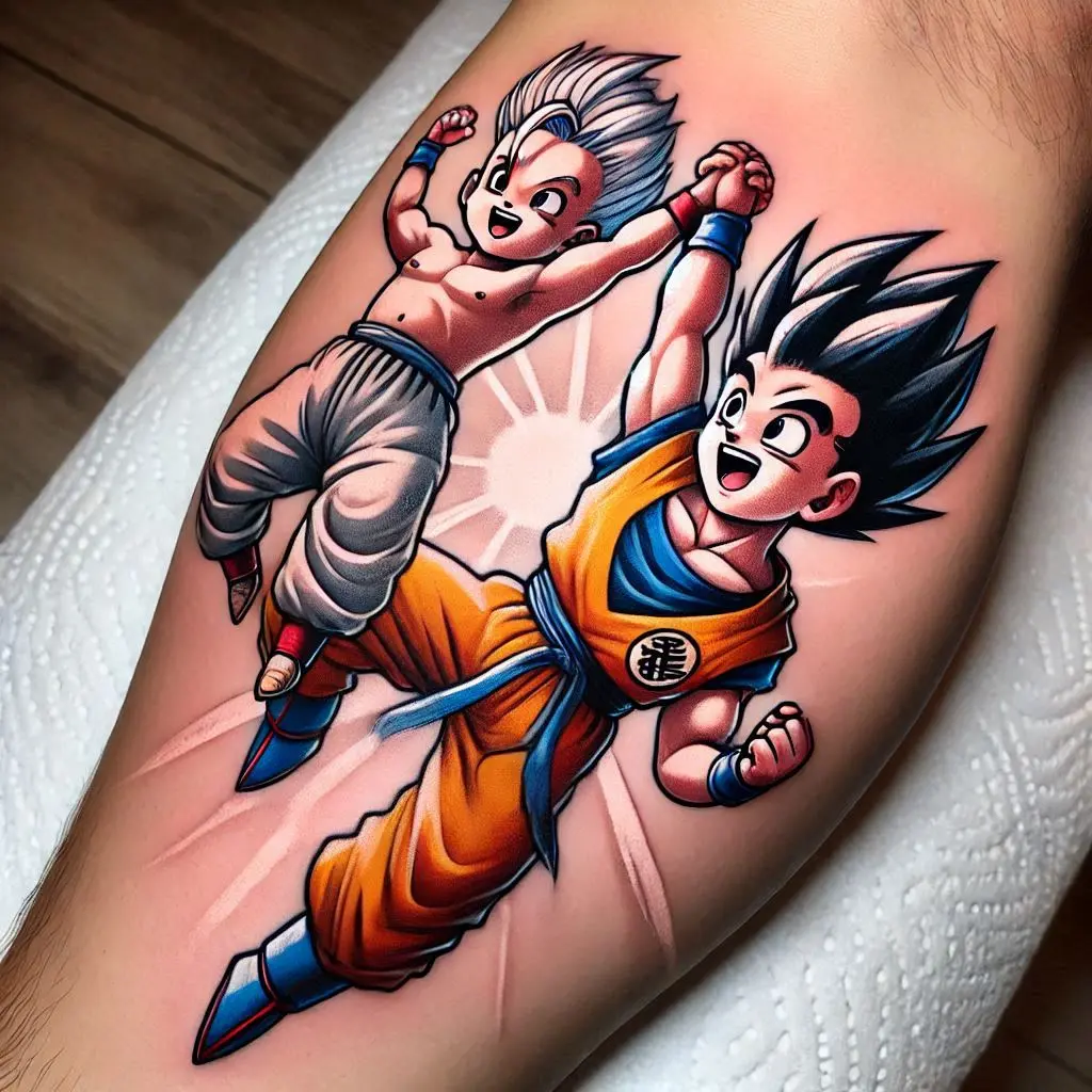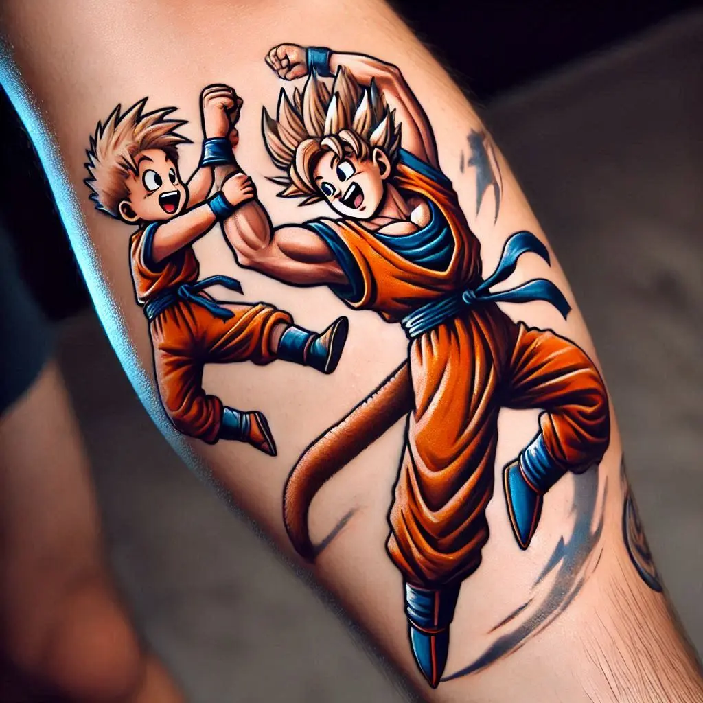 - Trunks and Goten (Dragon Ball Z): A fun, energetic tattoo showing the close bond of these two characters, representing youth and adventure.