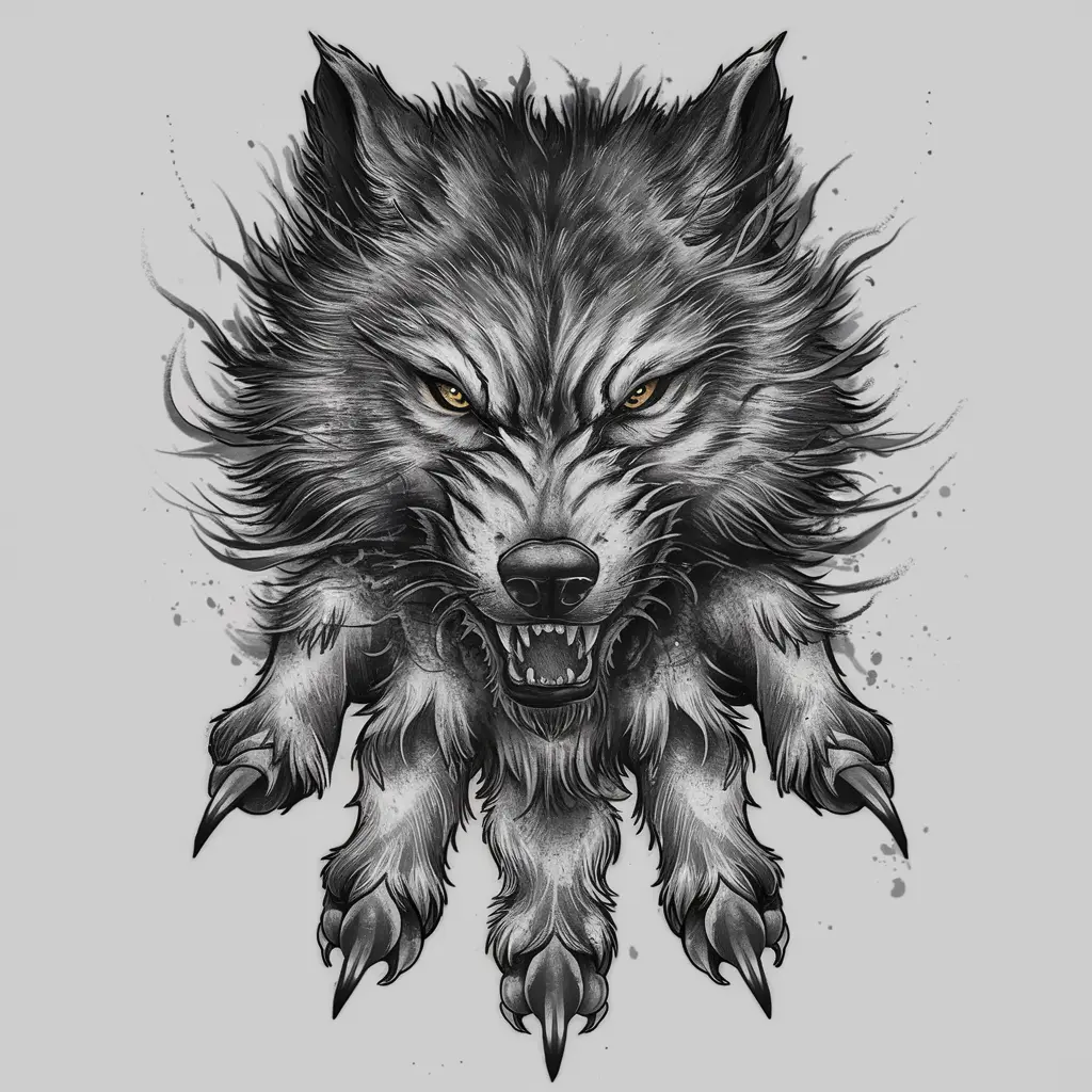 Placement: Wolf’s head on the back of the hand with paws extending down to the fingers.