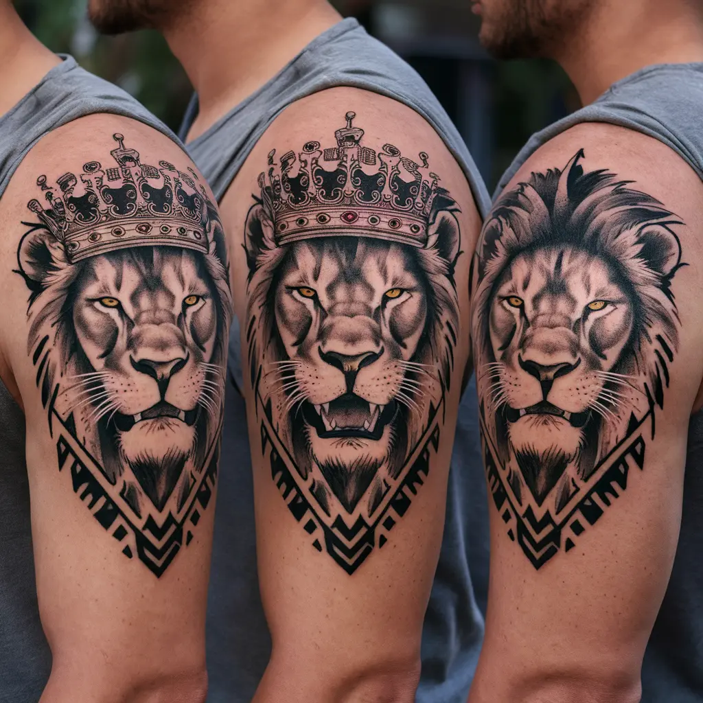 Placement: A lion tattoo works well on the back, upper arm, or chest. Its larger size allows for more intricate details, making it perfect for a meaningful design.