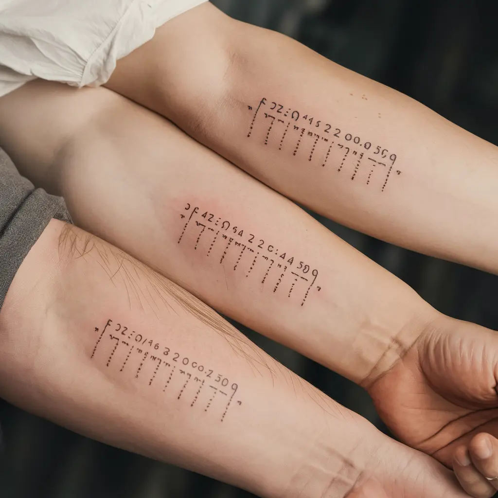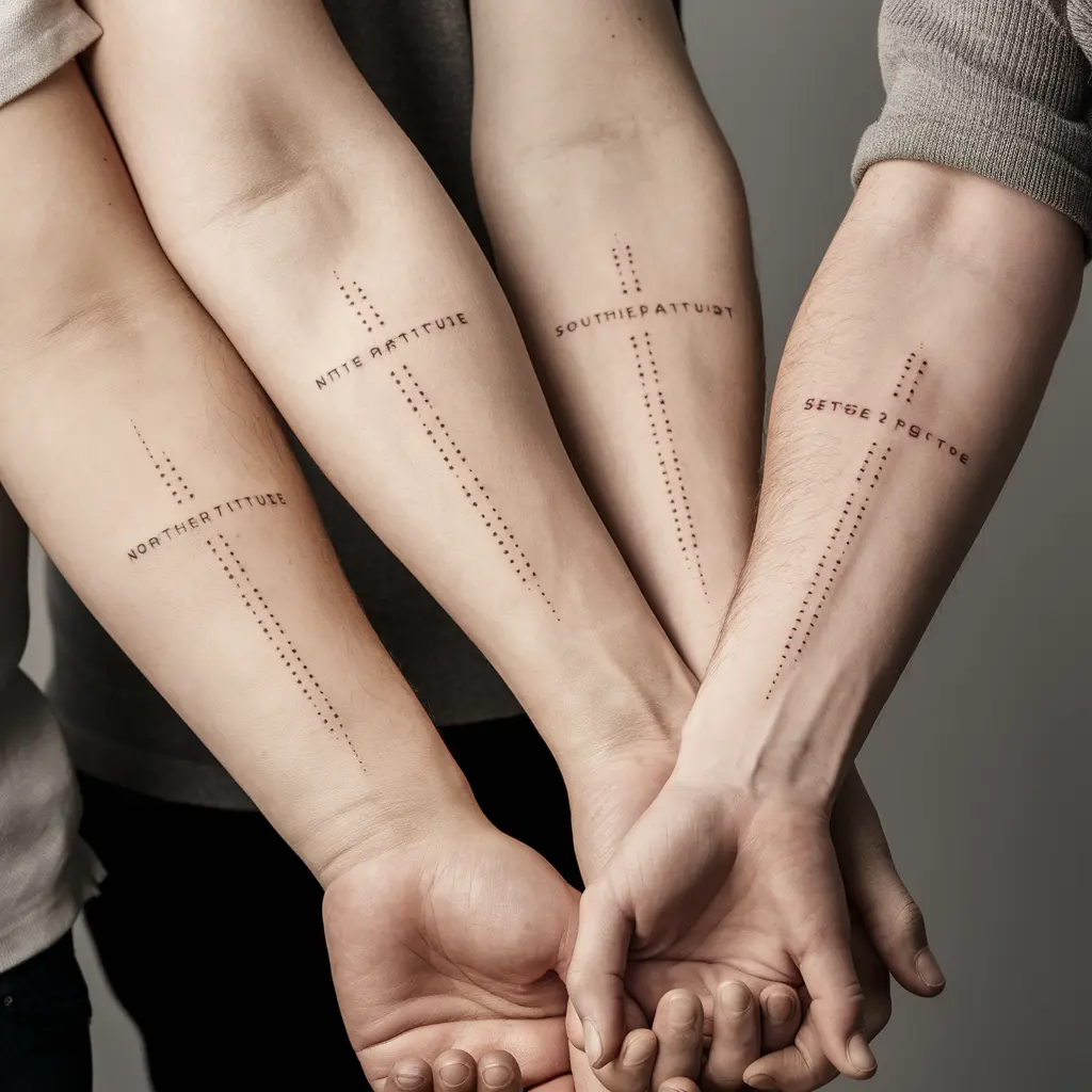 Tattoo Meaning: Coordinates symbolize a specific location that means something important to all of you, representing the foundation of your relationship and the memories you share.