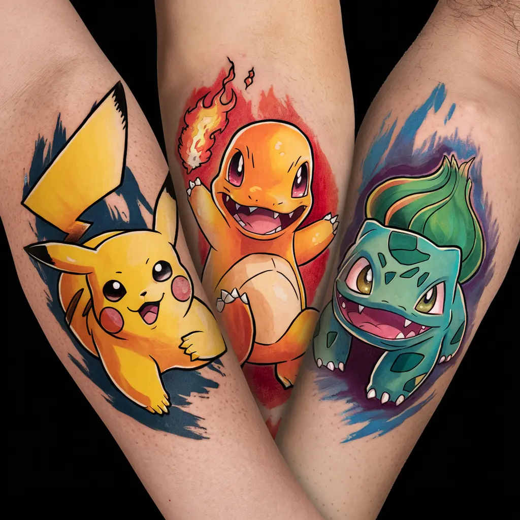 Tattoo Meaning: Pokémon symbolize friendship, loyalty, and adventure. The tattoo is a fun way to celebrate the bond you share, rooted in the games and shows you loved growing up.