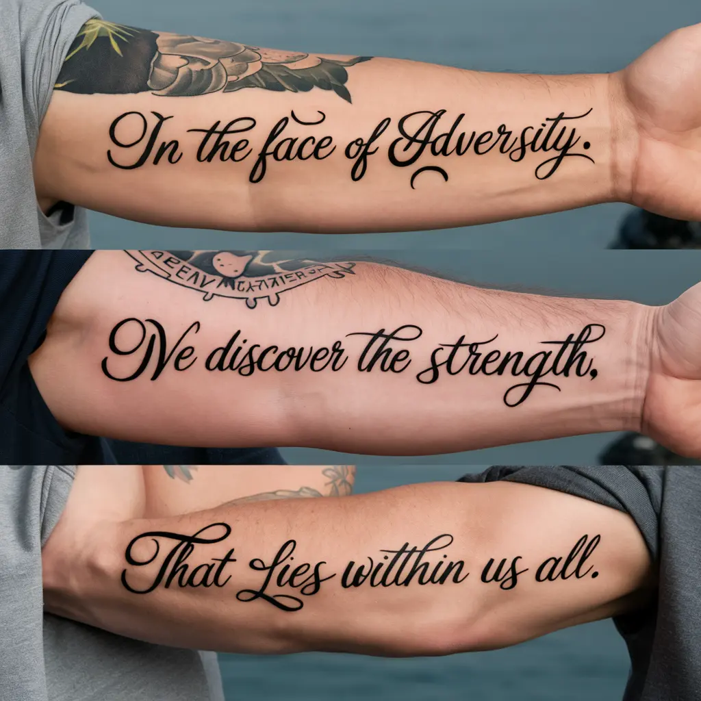 Placement: The quote can be placed across your forearm, upper arm, or along your ribs for a more private tattoo. The placement should reflect the length of the quote.