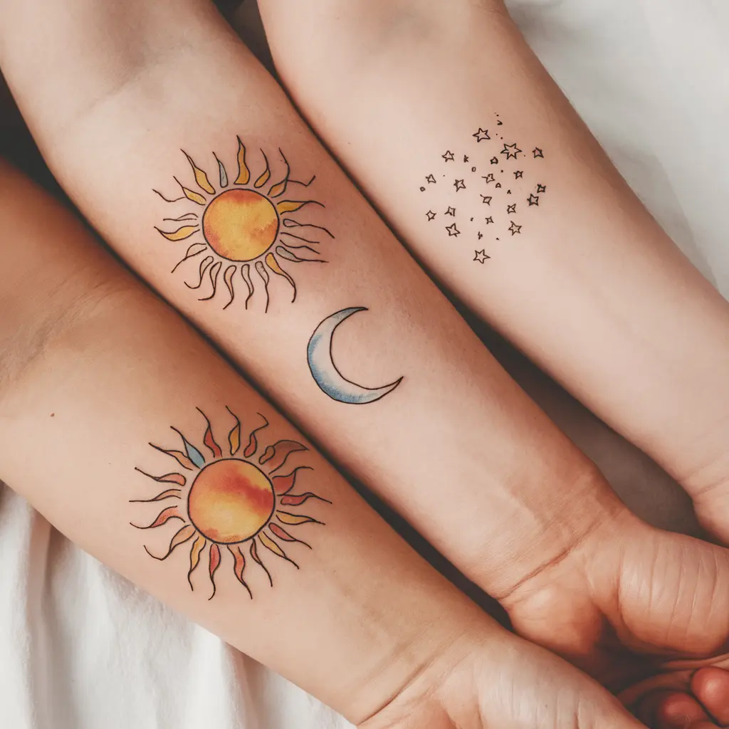 Sun, Moon, and Stars Tattoo for Three Brothers