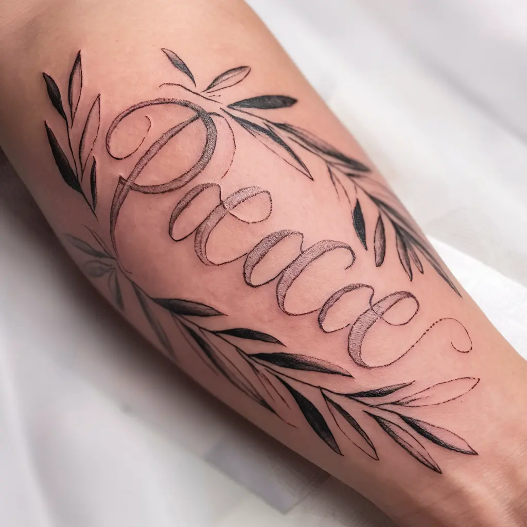 Meaning: Olive leaves symbolize peace and reconciliation, while the handwritten style adds a personal vibe.