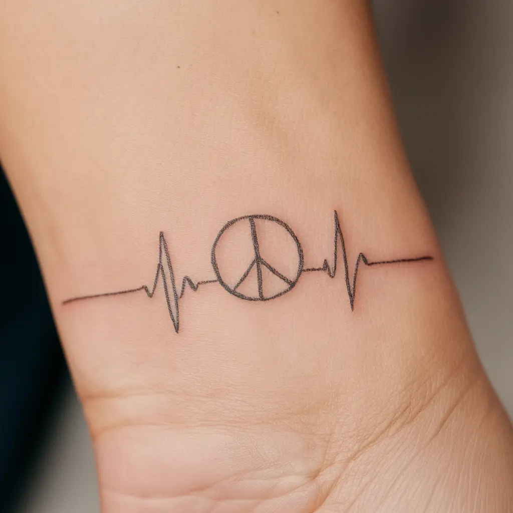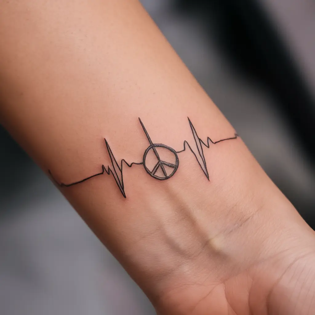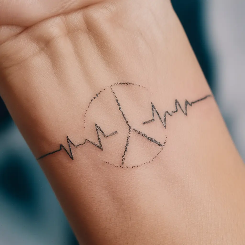 Description: A heartbeat line that transitions into the peace symbol, blending the concepts of life and serenity.