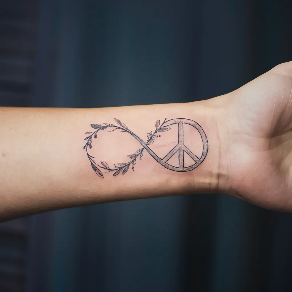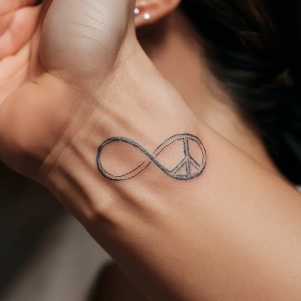 Description: A peace sign seamlessly integrated into an infinity symbol, representing eternal tranquility.
