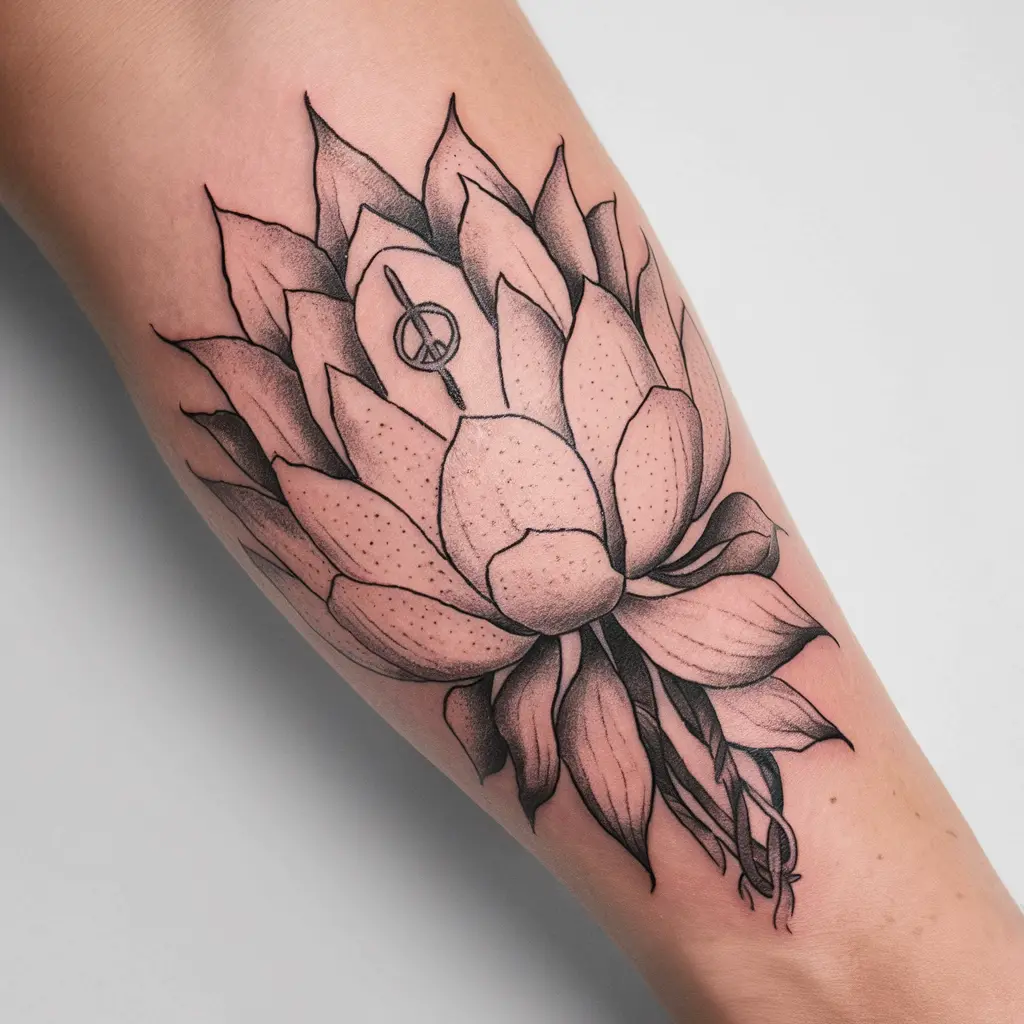 Description: A blooming lotus flower with the peace sign subtly incorporated into the petals.