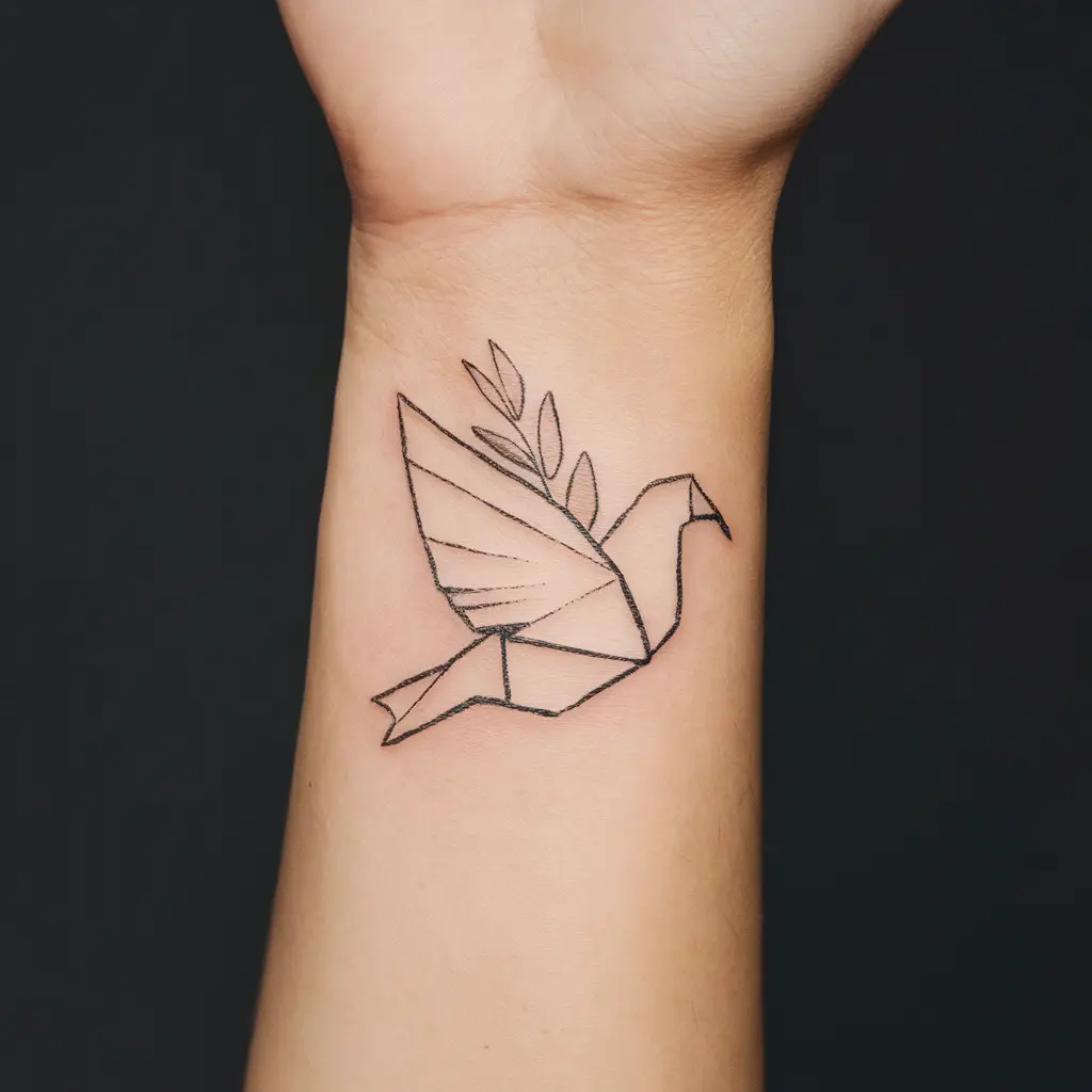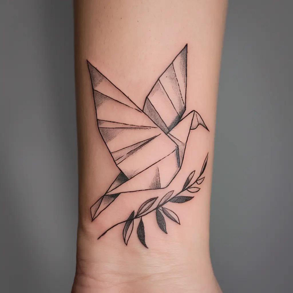 Meaning: This tattoo reminds us of harmony and hope. The dove is a classic symbol of peace, and the origami style adds a modern twist.