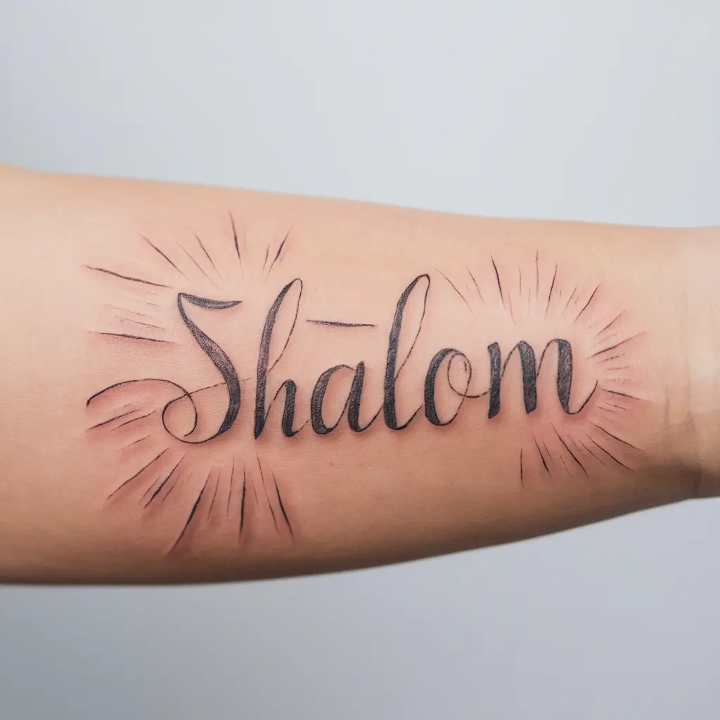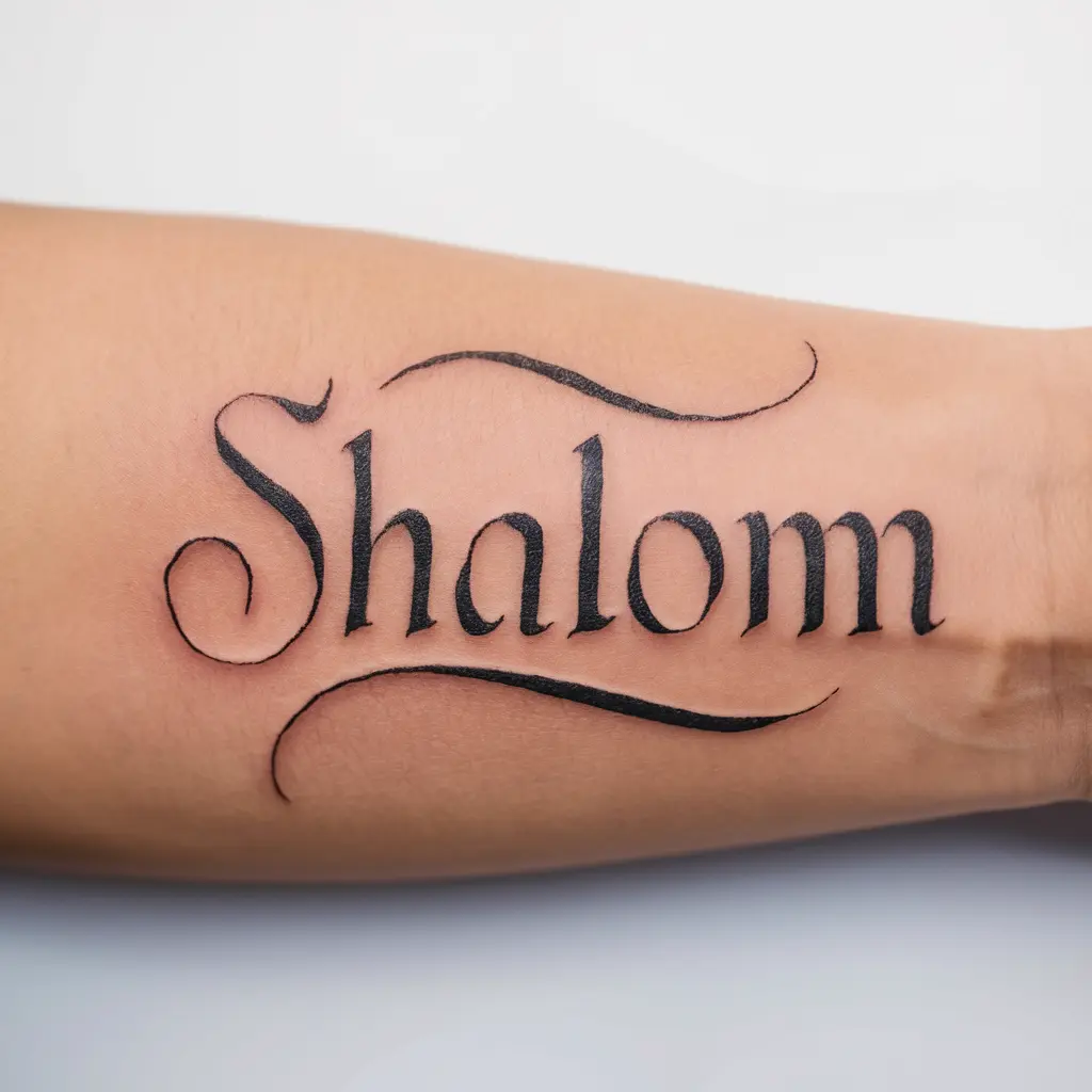 Description: The Hebrew word for peace, “Shalom,” written in elegant script.