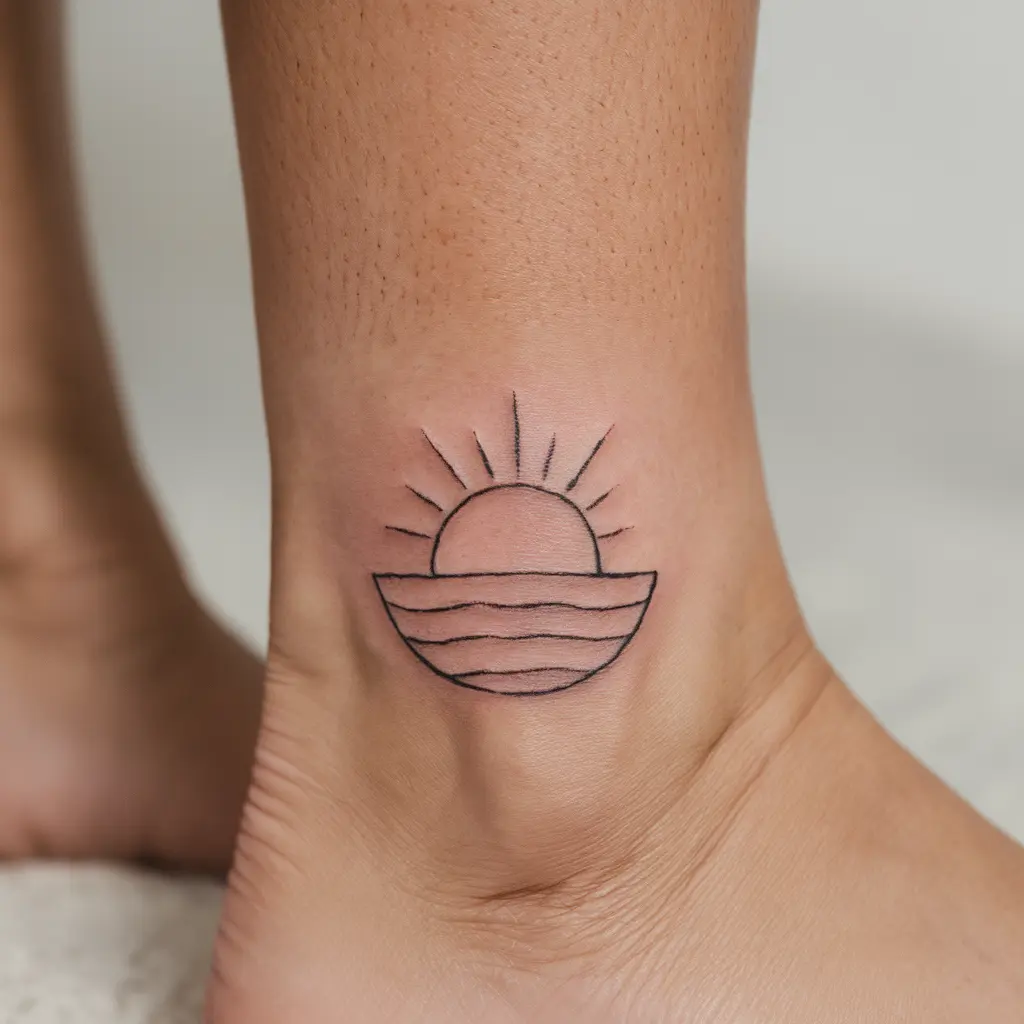 Description: A minimalist design of a sunrise over still waters, representing tranquility and new beginnings.