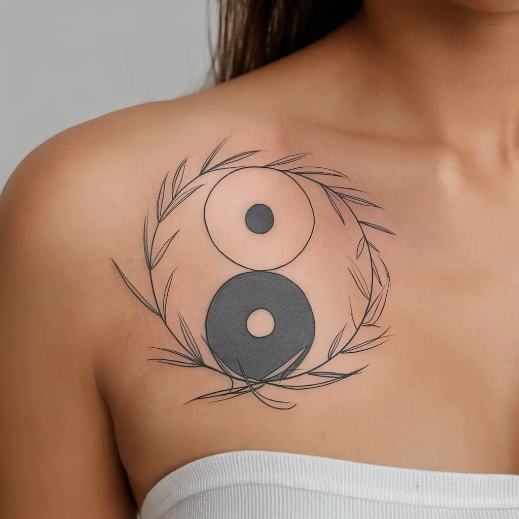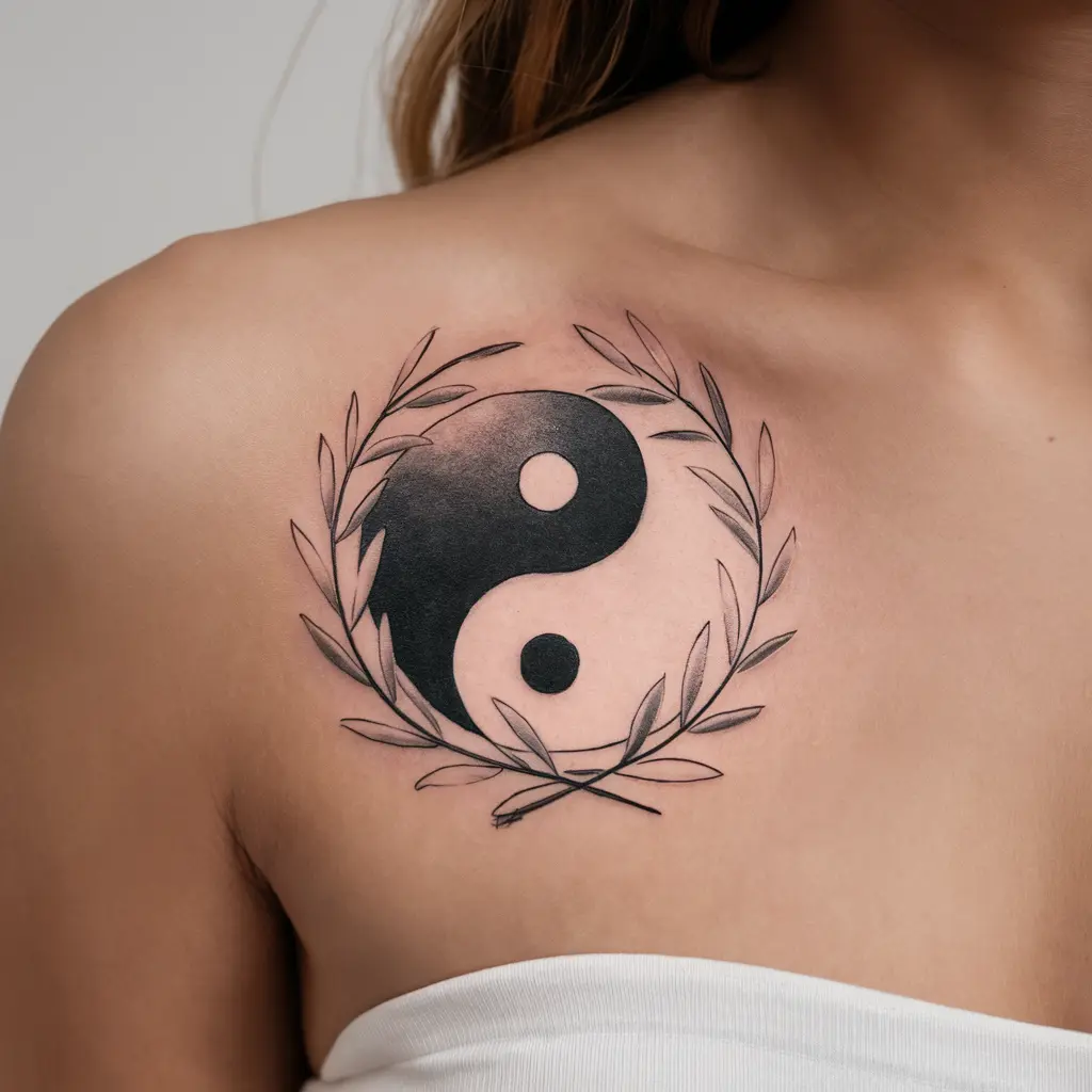 Meaning: Yin and yang symbolize duality, while olive branches add a touch of peace and victory.