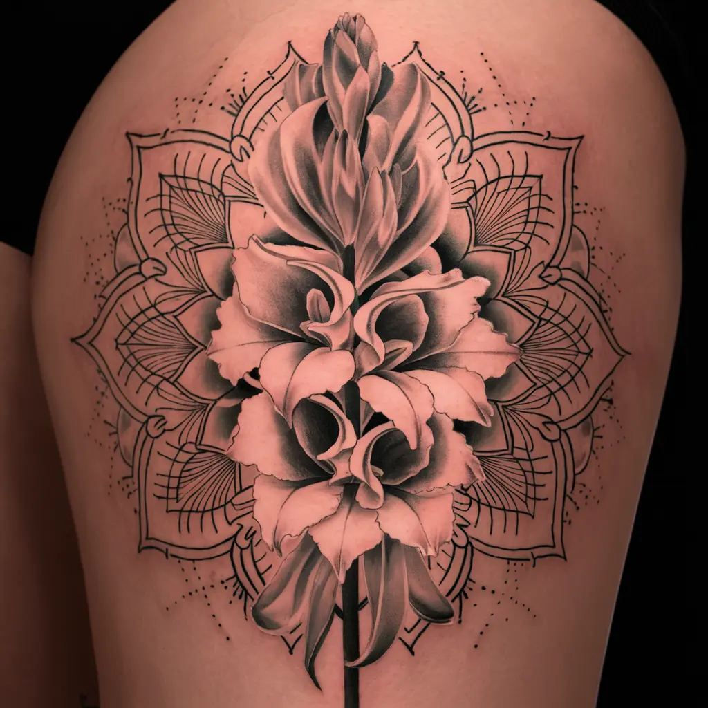 Why I Love It: The intricate details of a mandala design paired with the elegance of the gladiolus flower create a mesmerizing tattoo that feels both artistic and spiritual.
