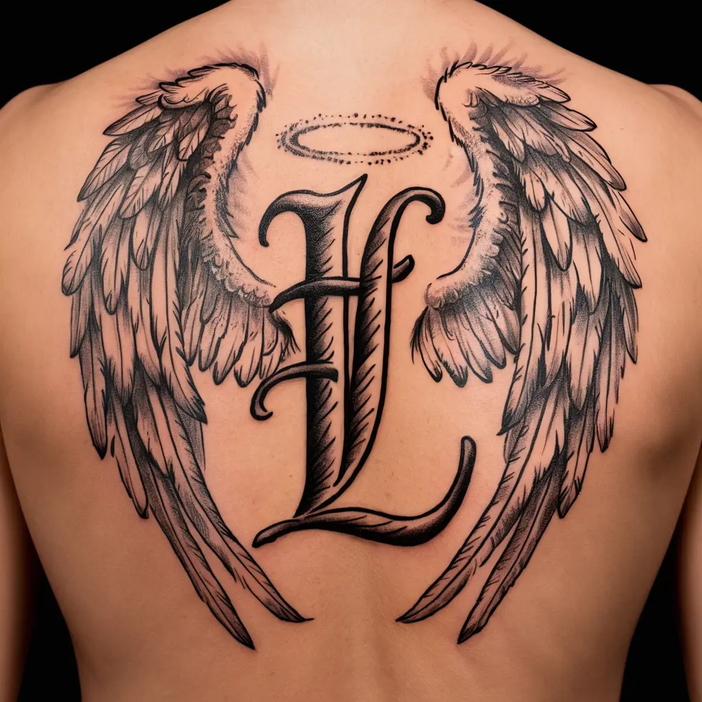 Personalize Description: Imagine a beautifully crafted “L” with delicate wings extending from either side. This tattoo gives off a heavenly, light-hearted vibe.