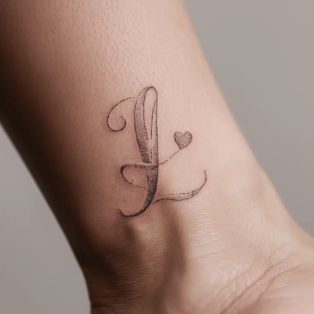 Personalize Description: A simple letter “L” intertwined with a small heart at its base or side. This design symbolizes love and affection.