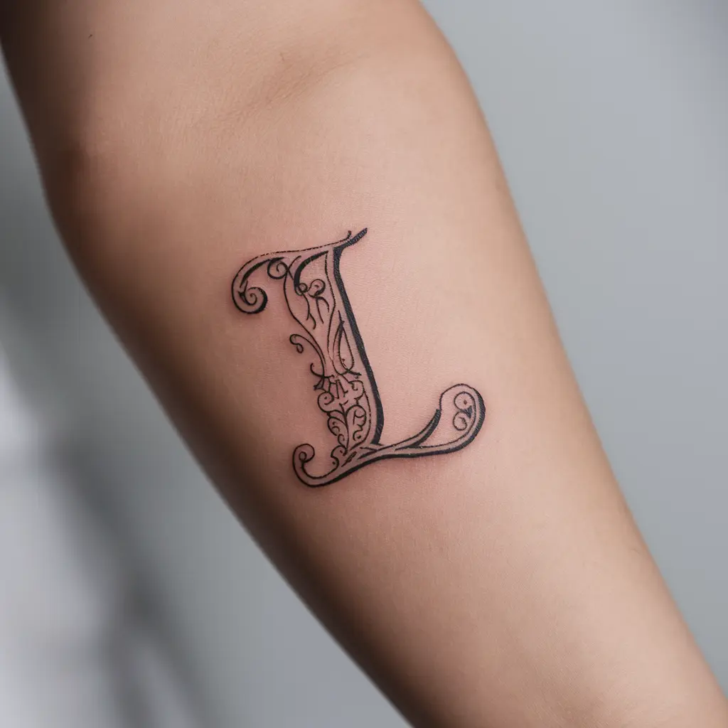 Personalize Description: This design features a simple lowercase “l” in a thin, clean font. Its simplicity makes it an elegant choice for those who prefer subtle tattoos.