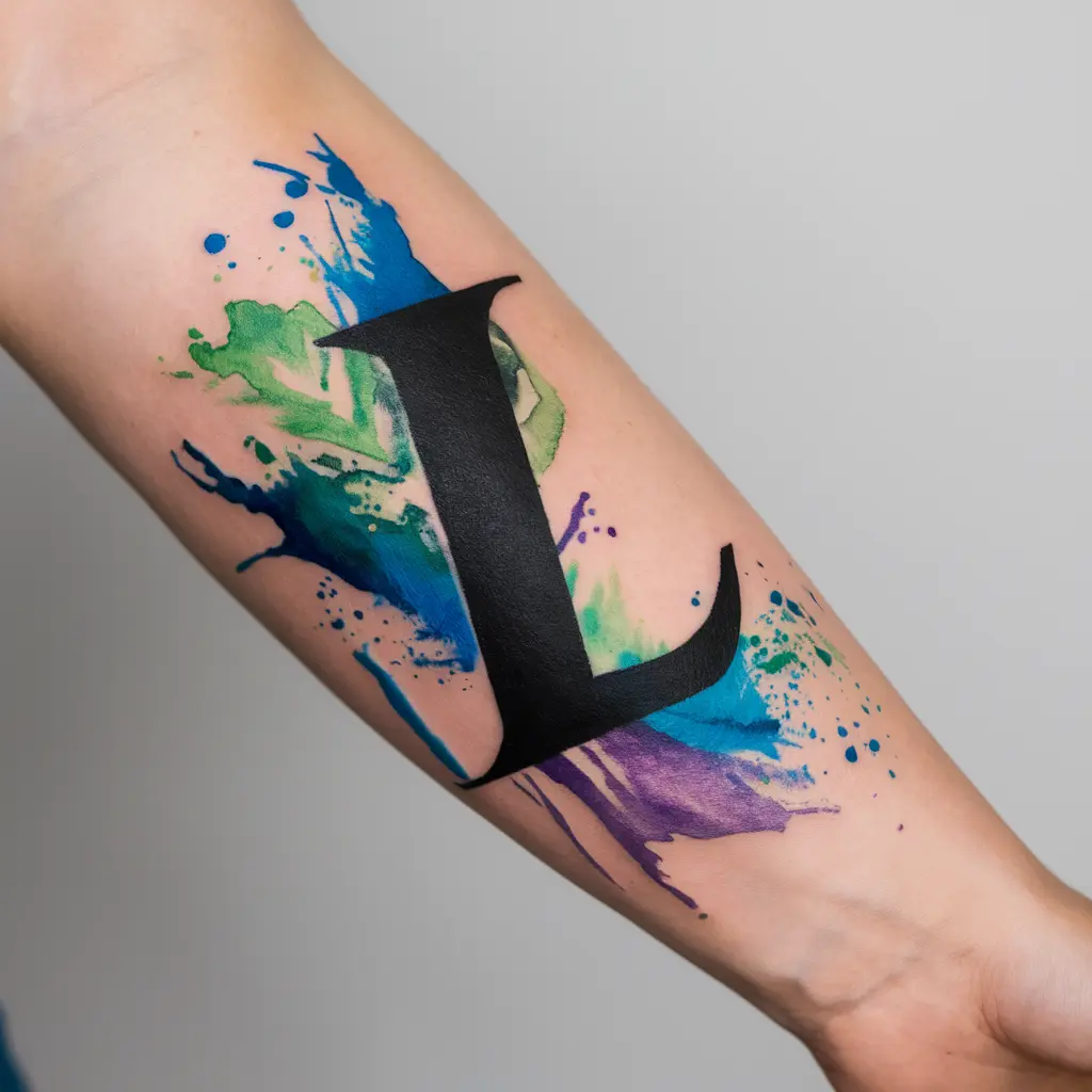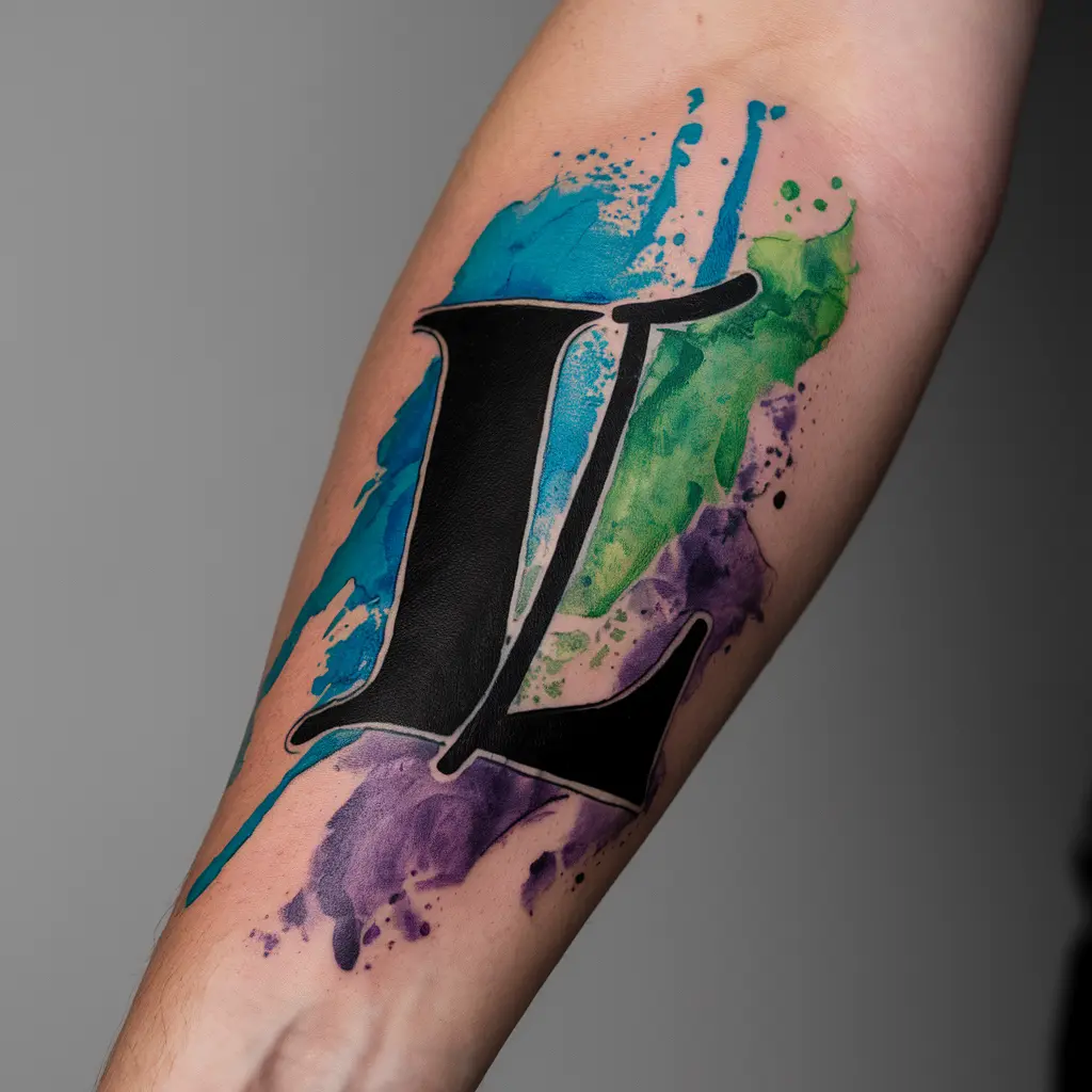 Tattoo Meaning: Watercolor tattoos represent creativity, individuality, and expression. The “L” here could symbolize a person, place, or idea that’s colorful and full of life.