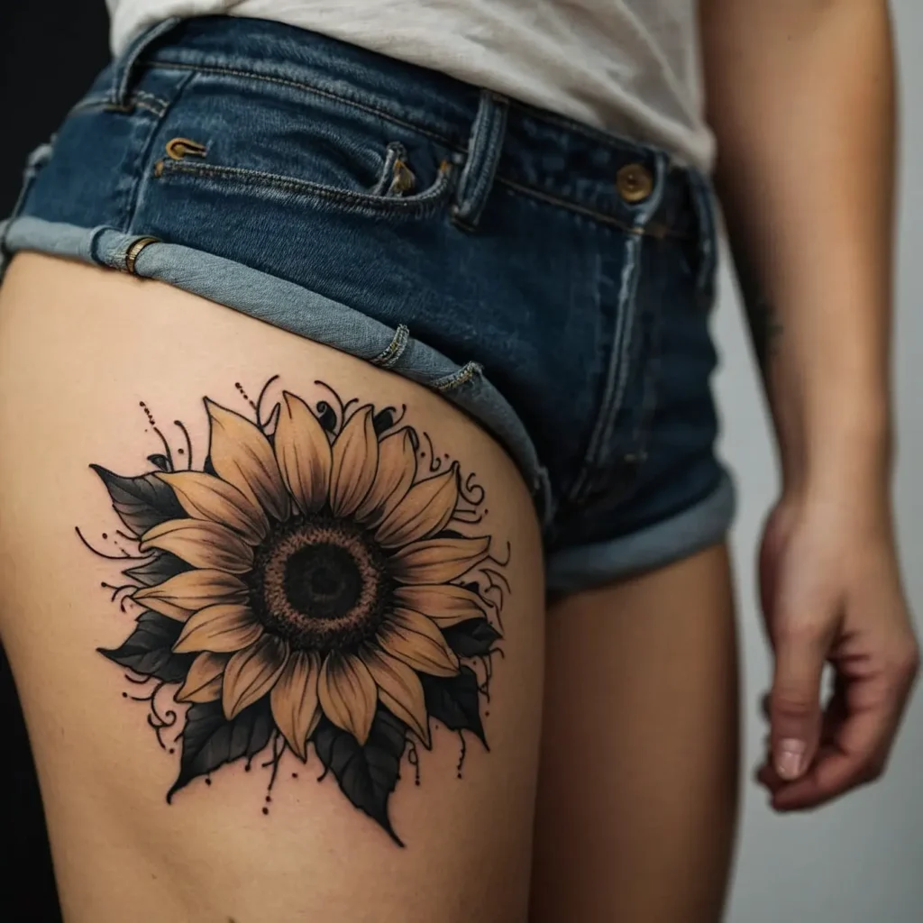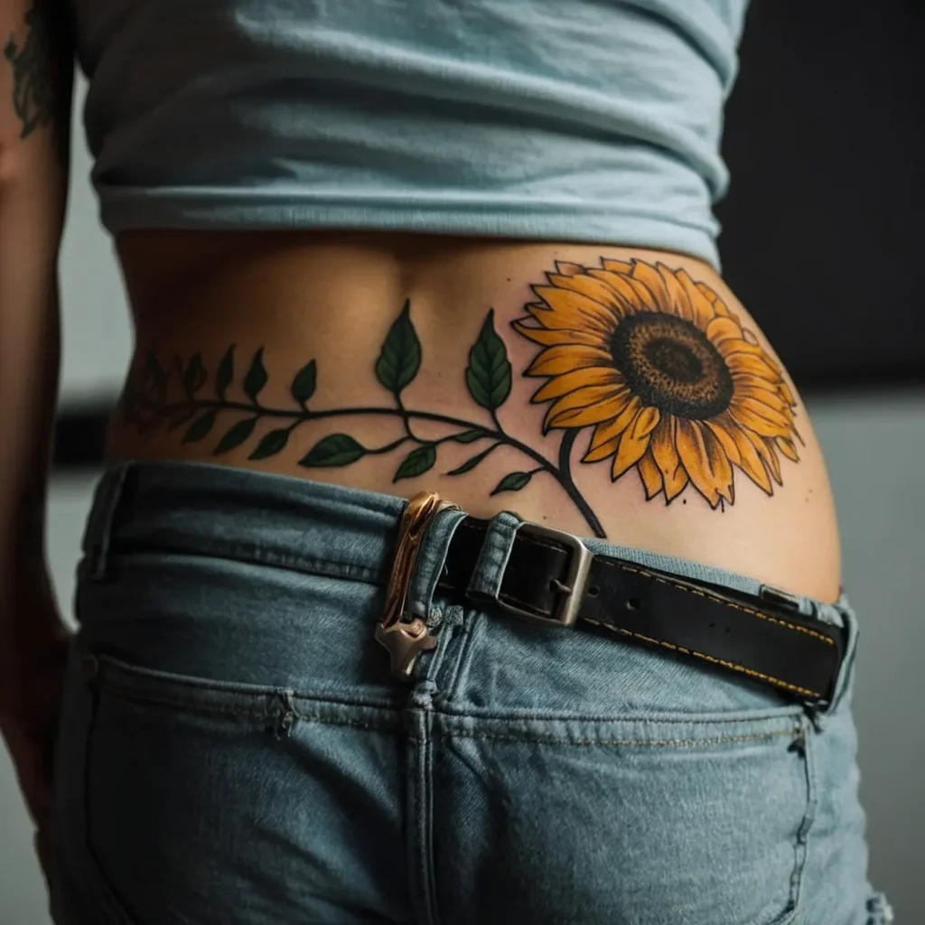 Bright Sunflower Floral Hip Tattoo Designs