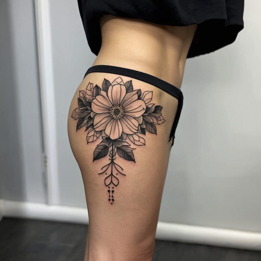 Have you noticed how hip tattoos are making a huge splash lately? They’re super trendy and stylish, adding a touch of mystery and charm right where it counts. And let’s talk floral designs—they’re absolutely stunning and incredibly popular. There’s something magical about having a beautiful flower inked on your hip, whether it’s a vibrant tropical bloom, a serene lotus, or a timeless rose.