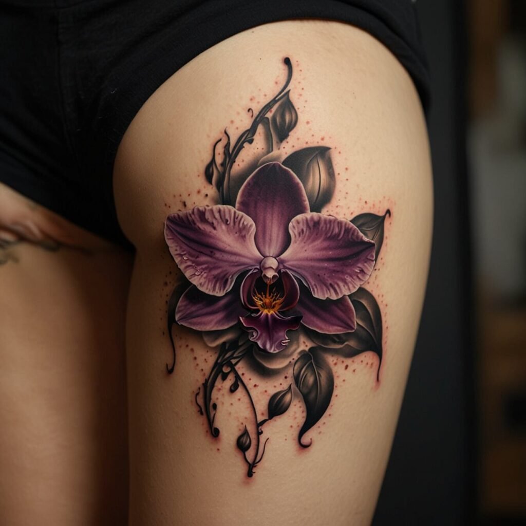 Orchid Floral Hip Tattoo Designs