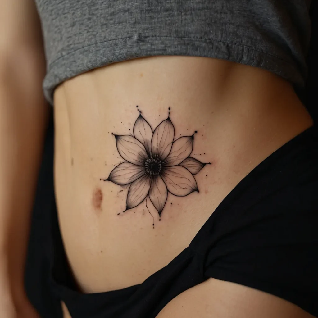 Single Line Flower Hip Tattoo Designs