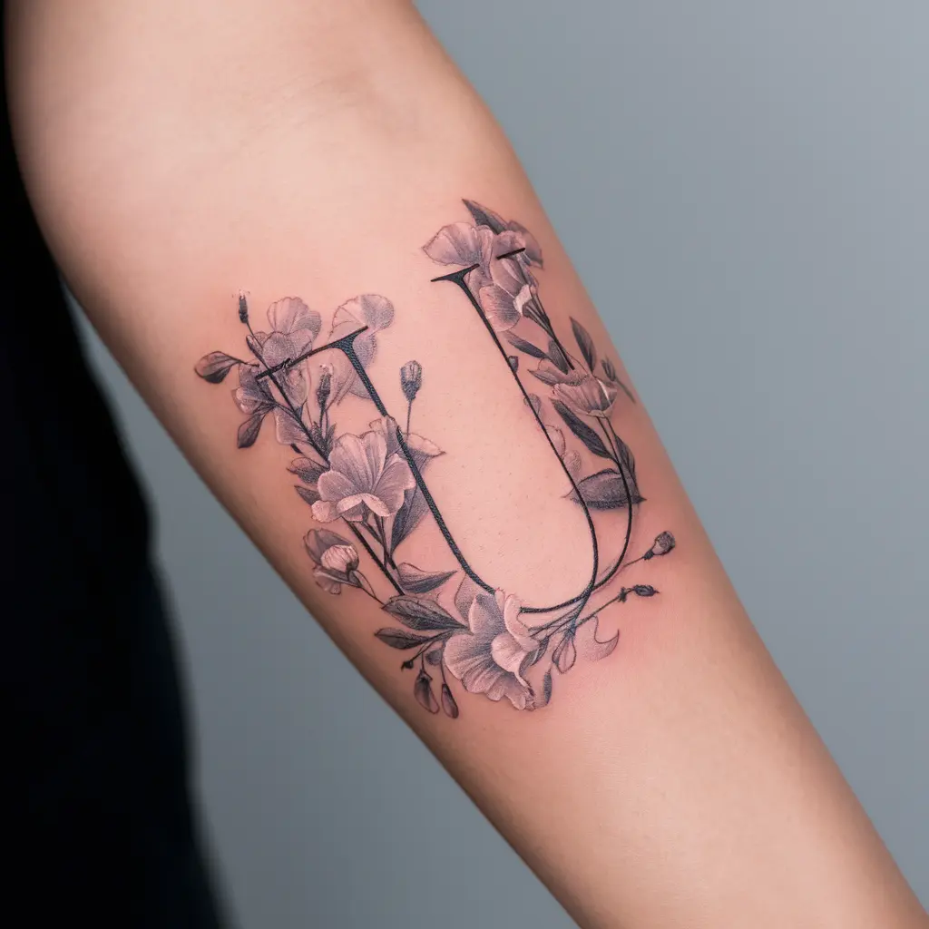 Meaning: The combination of the letter “U” with flowers represents growth, beauty, and connection to nature.