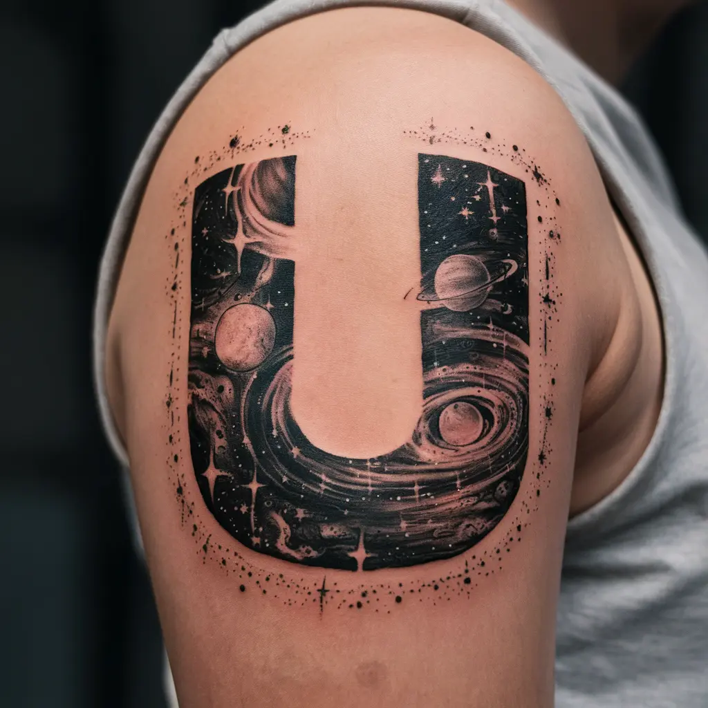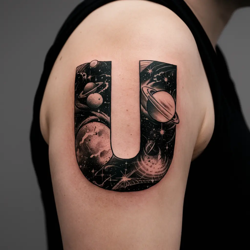 A cosmic twist on the letter “U” can make your tattoo feel vast and expansive. Imagine a “U” filled with stars, planets, and swirling galaxies.