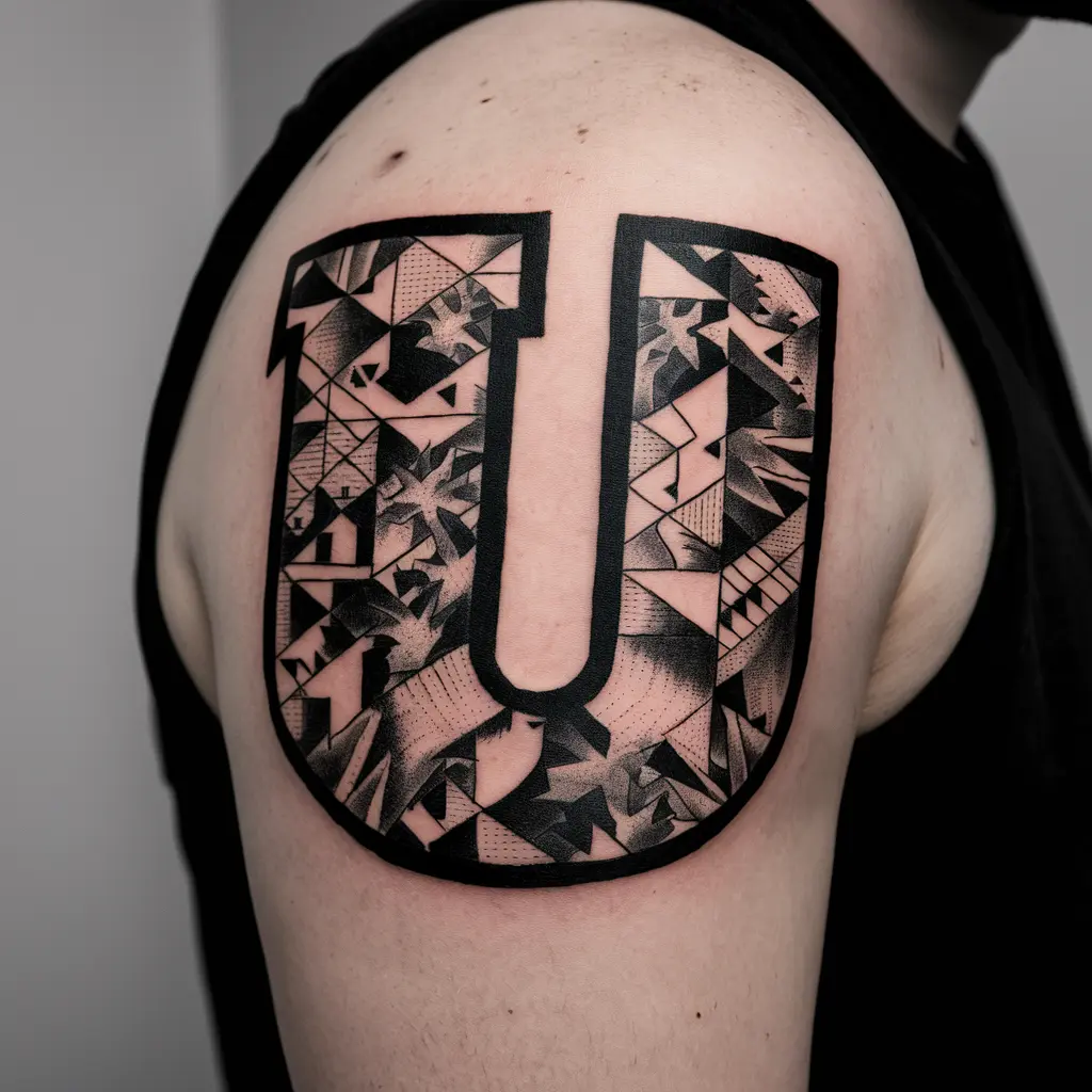 For those who enjoy clean lines and structure, a geometric “U” might be the perfect choice. The letter is filled with triangles, squares, or other geometric patterns.