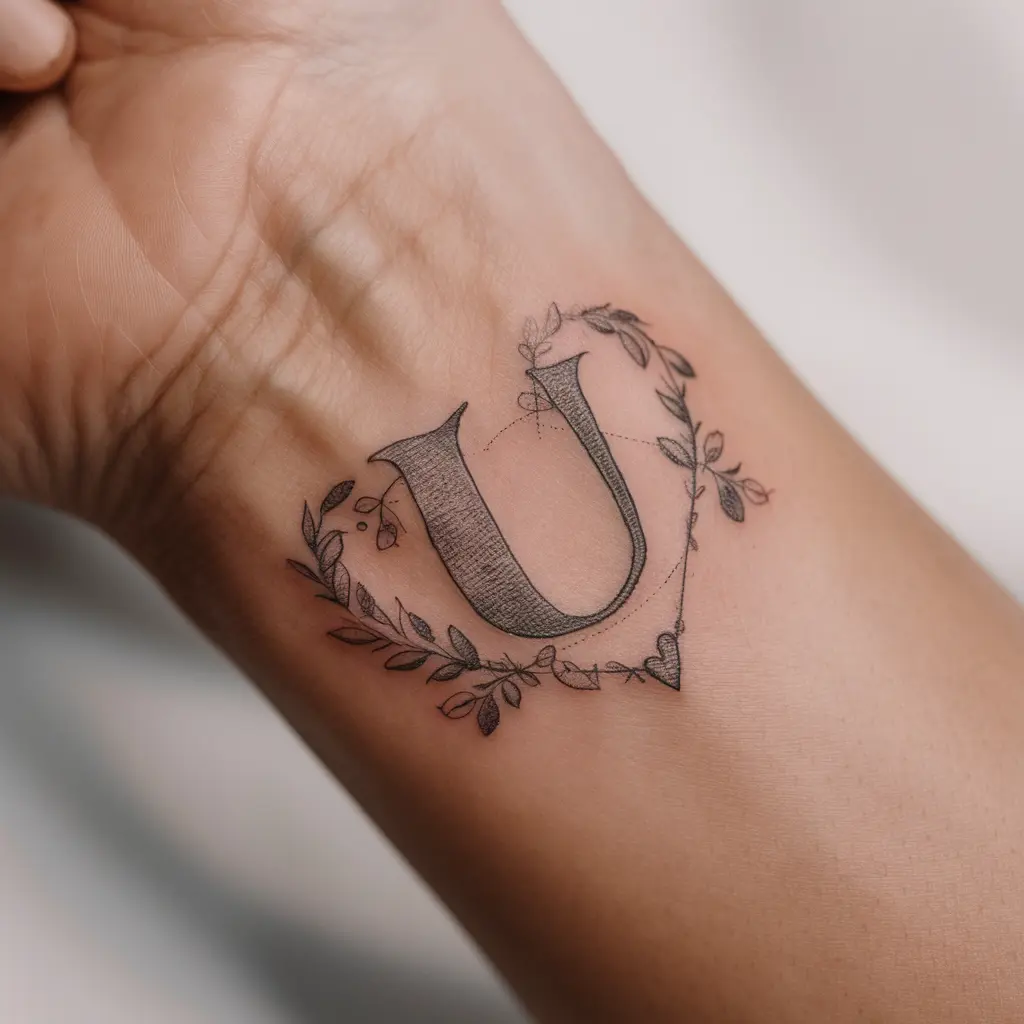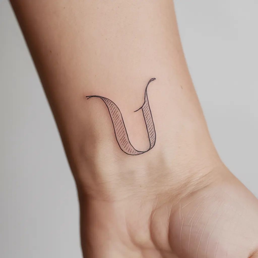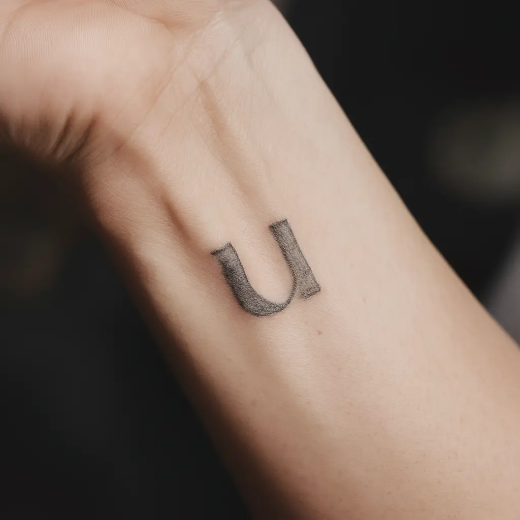 A minimalist tattoo is the perfect choice if you prefer something subtle yet stylish. The letter “U” is designed with thin, clean lines, making it elegant and timeless.
