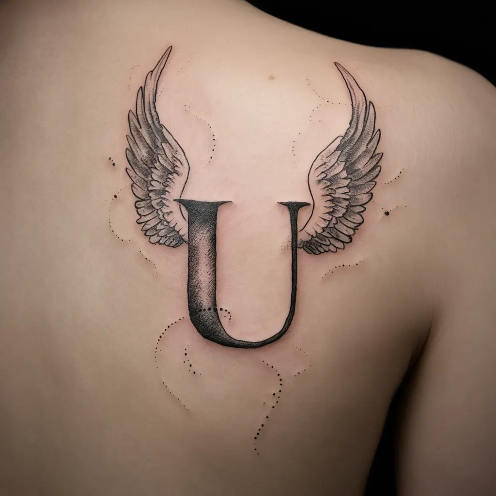 A “U” with wings represents freedom, transcendence, and a desire to rise above challenges. The wings could be soft and angelic or sharp and bold, depending on the look you’re going for.