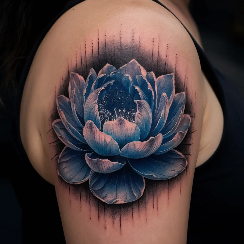 Personalized Description: A blue lotus, blooming gracefully, symbolizing purity and spiritual awakening. The design feels serene yet powerful.
