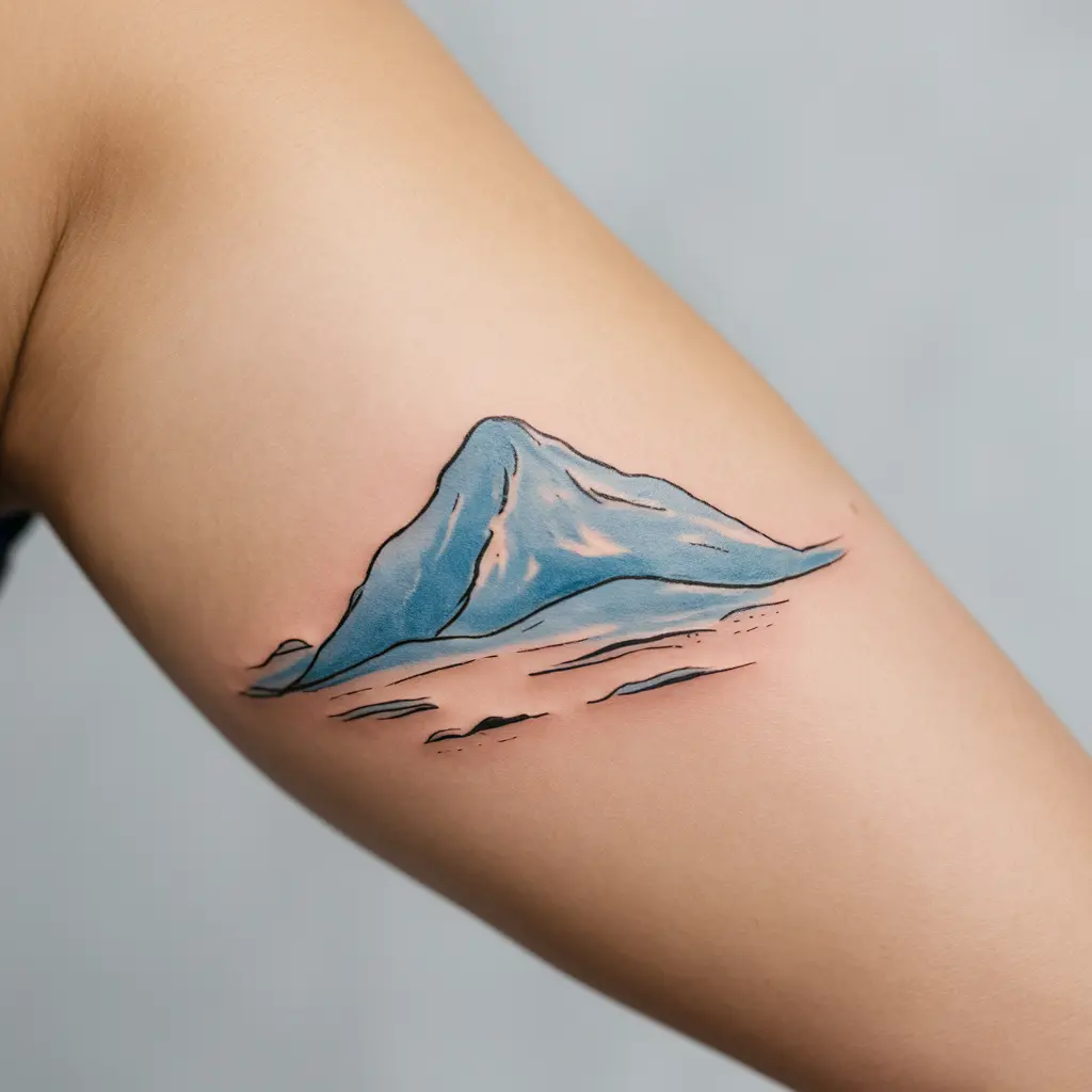 Tattoo Meaning: Mountains represent strength, perseverance, and overcoming obstacles. Blue hues bring a peaceful and calming touch.
