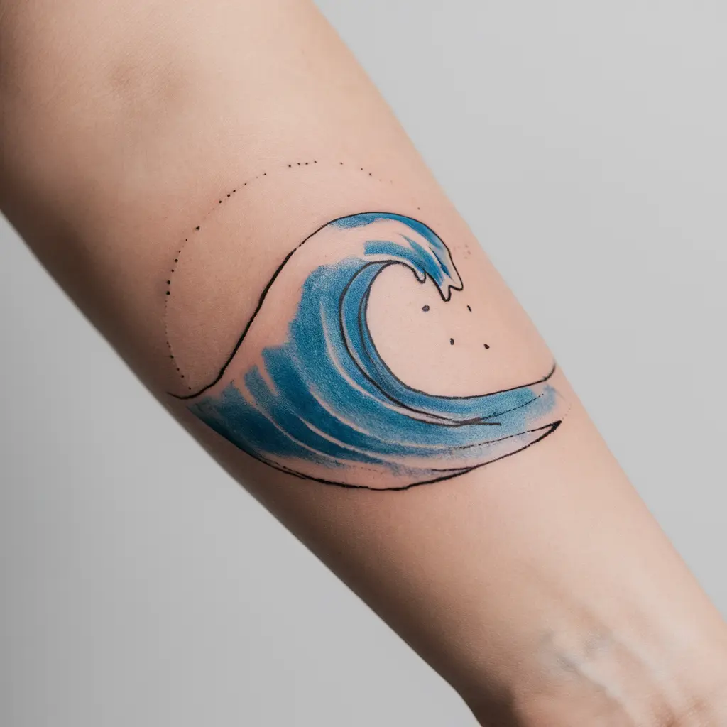 Why I Love It: Watercolor tattoos are a modern favorite because they give the impression of a painting on your skin. The mix of colors in blue waves creates a stunning visual, making it both peaceful and dynamic.