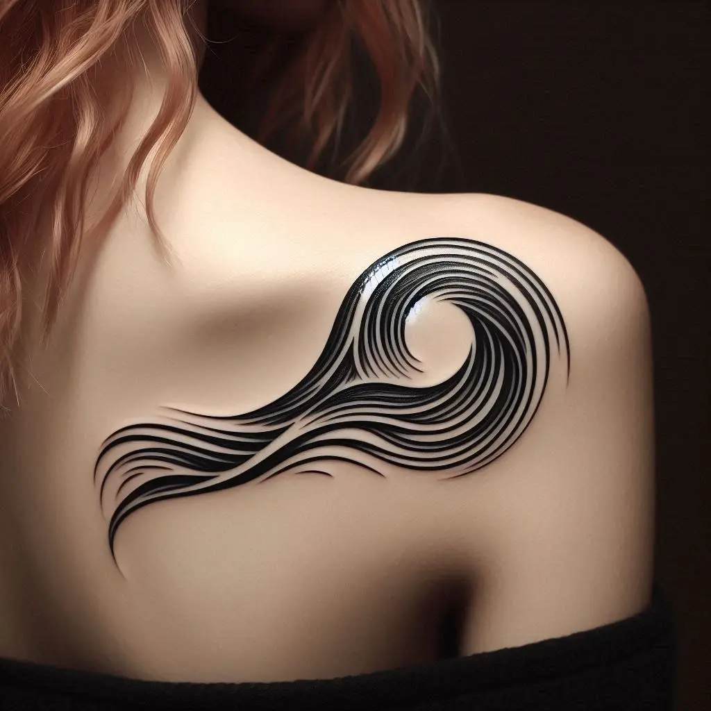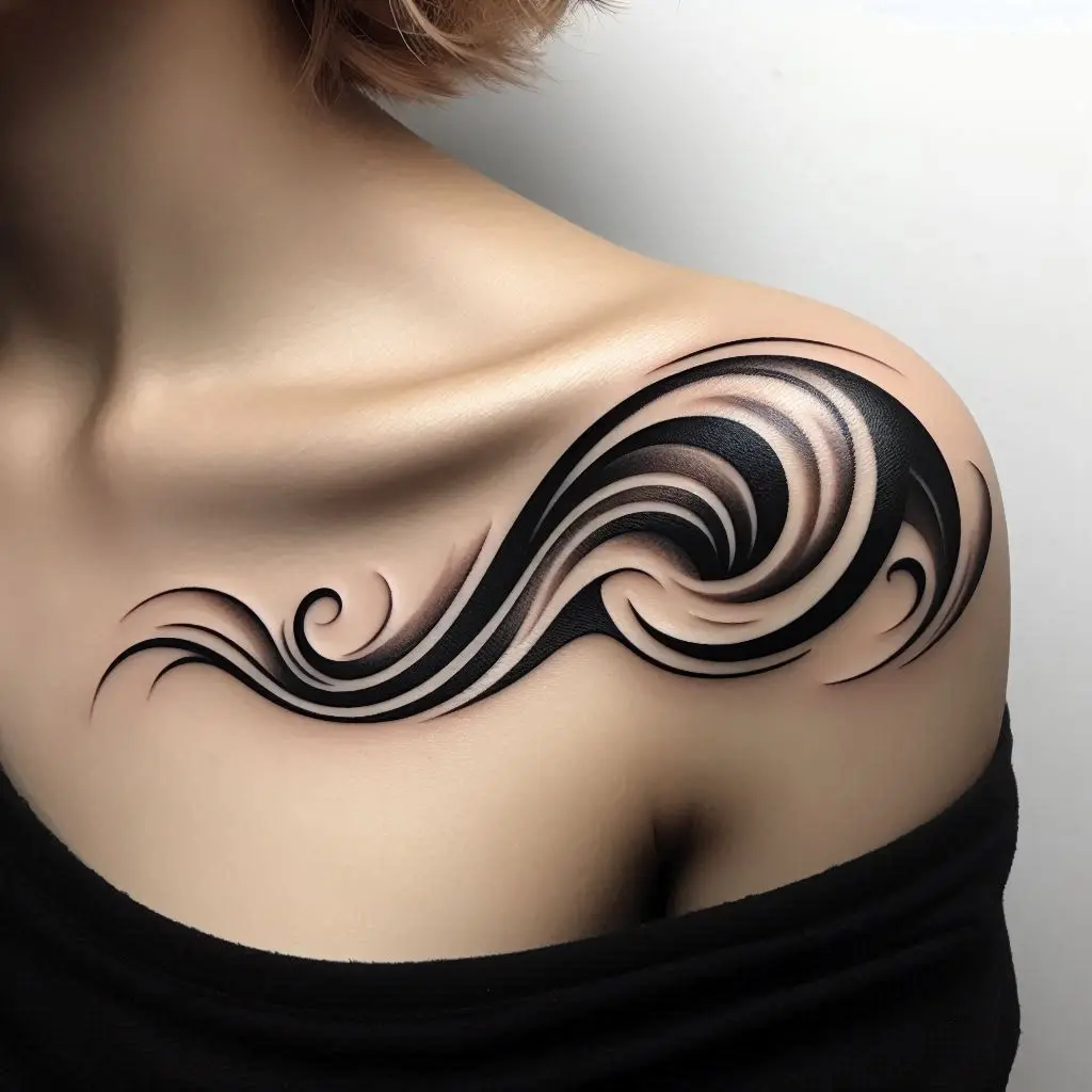 Placement & Why I Love It: Abstract waves on the shoulder create a flowing, peaceful design that mimics the rhythm of the ocean. I love how the waves wrap gently around the shoulder, symbolizing the calming yet unpredictable nature of life. It’s a simple but stunning design that feels soothing.