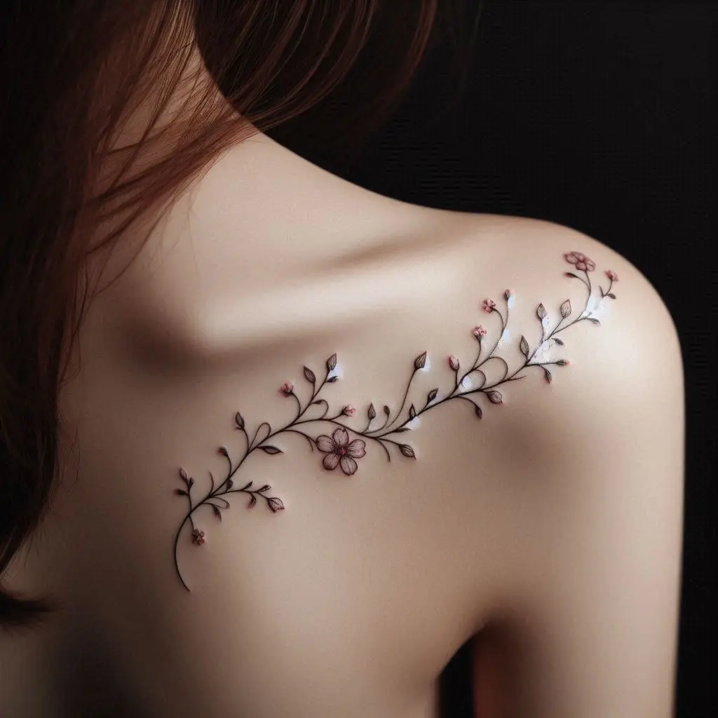 Tattoo Meaning: Flowers are often linked to love, life, and femininity, while vines represent growth.