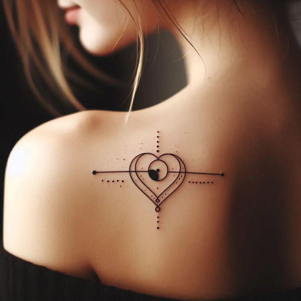 Tattoo Meaning: A heart represents love, passion, and connection. Geometric shapes symbolize balance and symmetry.