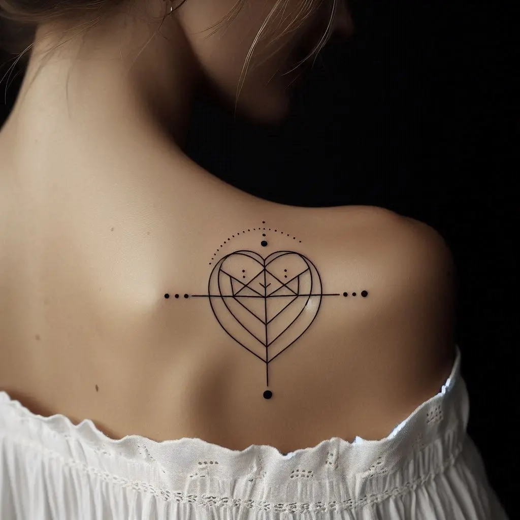 Placement & Why I Love It: I love how geometric tattoos blend hard lines with soft shapes. A heart made with clean geometric lines looks so modern and refined on the shoulder. It’s a beautiful way to symbolize love while keeping it fresh and contemporary.