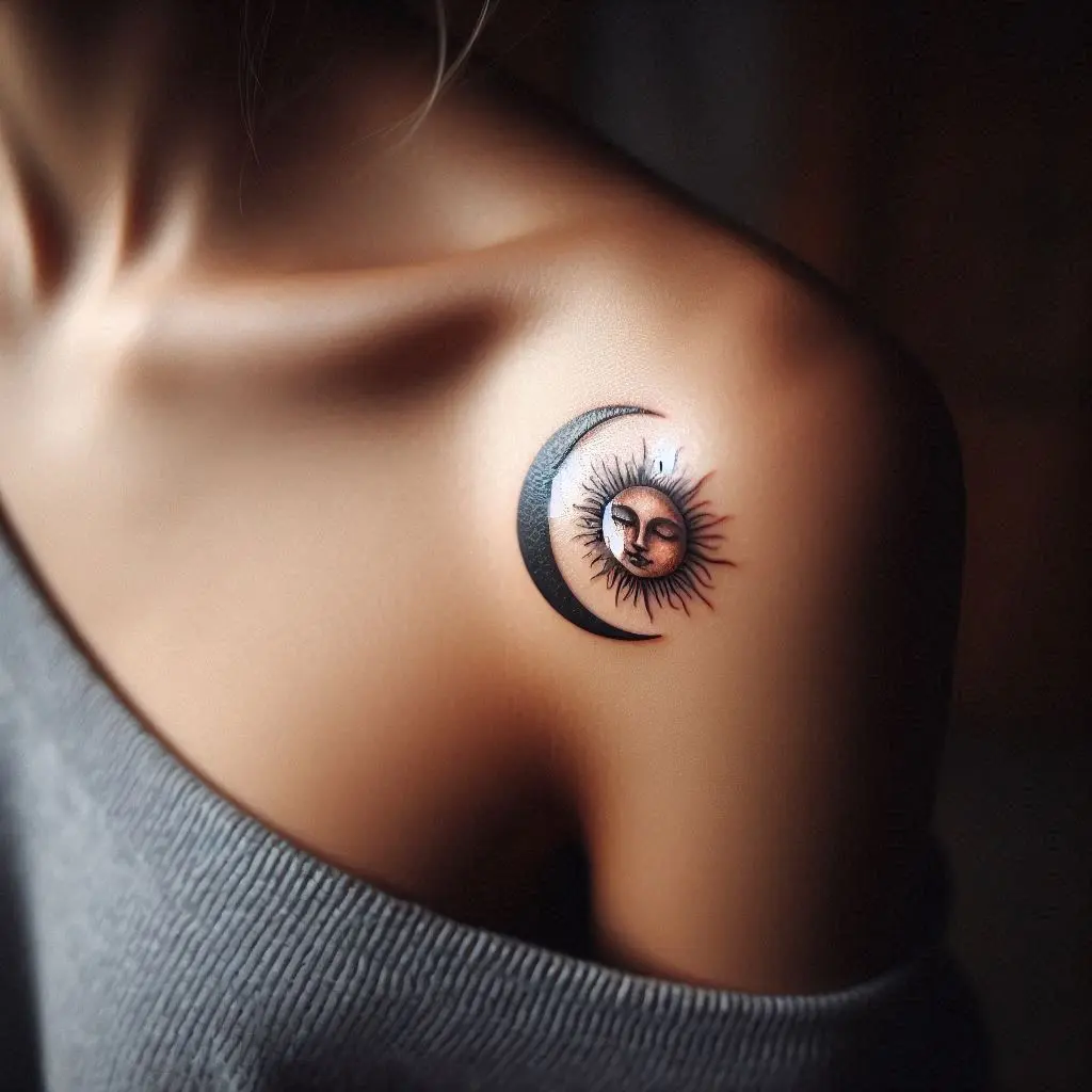 Placement & Why I Love It: Placing a small crescent moon and sun on your shoulder feels like a perfect blend of opposites. I find it speaks to the balance of light and dark in life. It’s both simple and profound, making it an ideal tattoo for anyone who embraces both sides of themselves.
