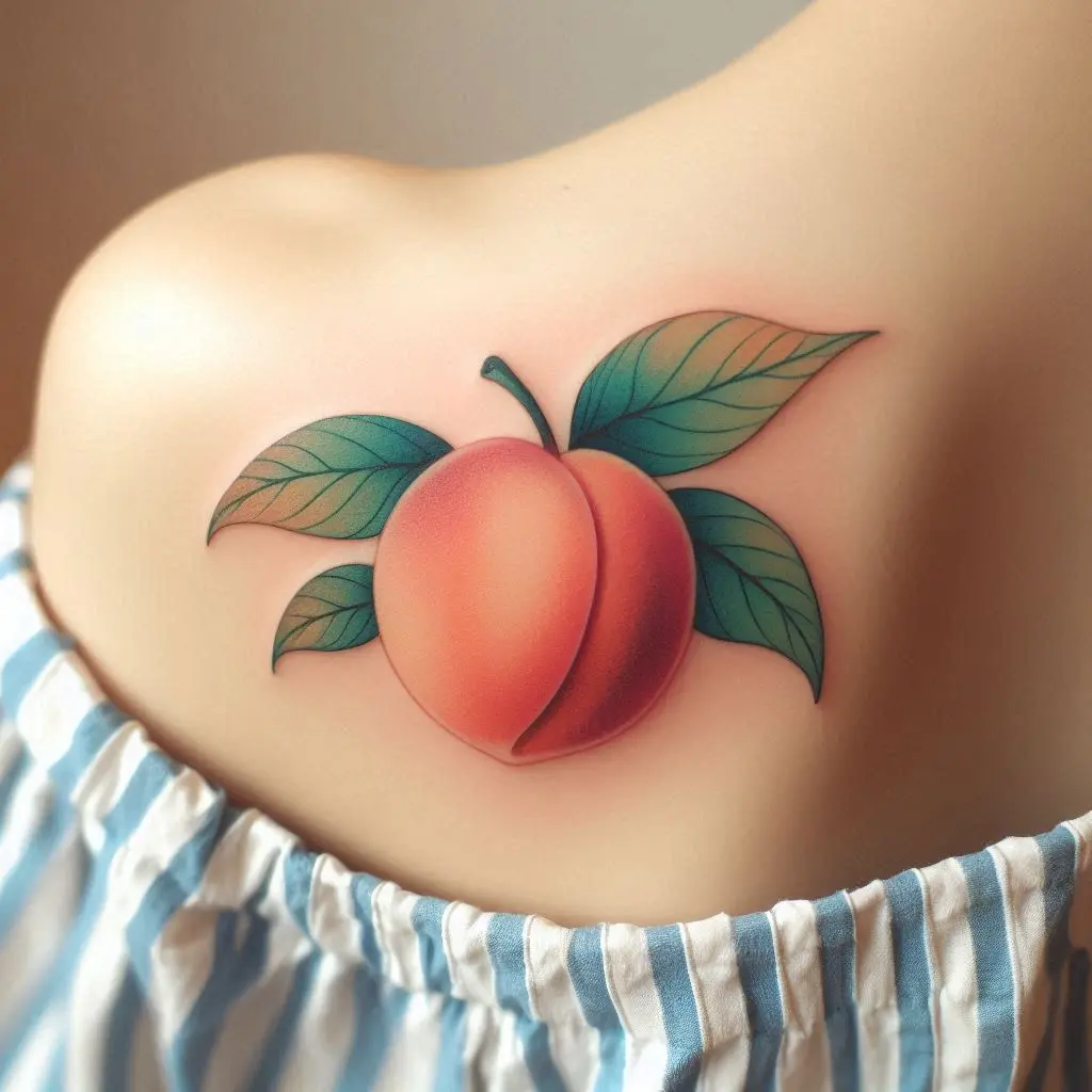 Tattoo Meaning: Fruit, like peaches, are often symbols of sweetness, vitality, and new beginnings.
