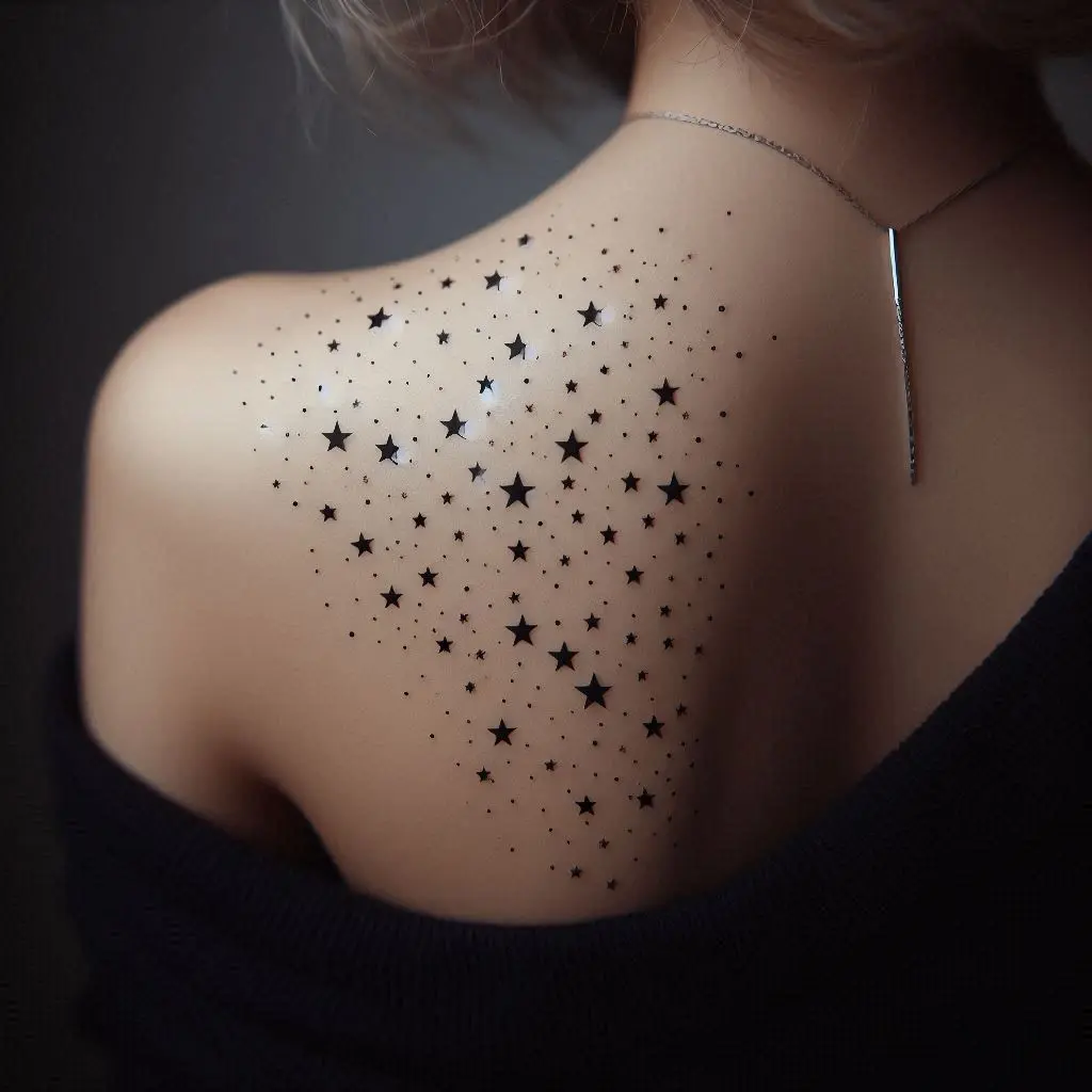 Placement & Why I Love It: A few tiny stars scattered across your shoulder create a whimsical and subtle touch. I love how this design can feel both cosmic and personal, almost as if you’re carrying a little piece of the night sky with you. It’s a versatile and charming way to add some magic to your body art.