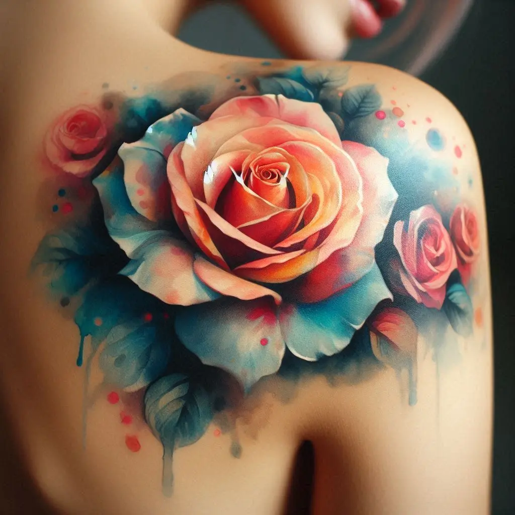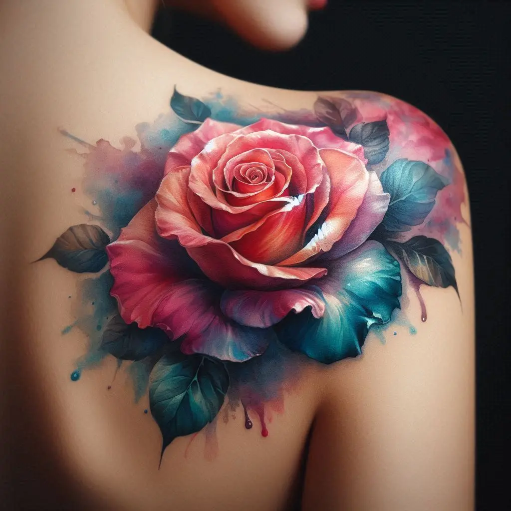 Placement & Why I Love It: The watercolor effect on a rose tattoo brings a fresh, artistic touch. I think the flowing colors make it feel alive, and the shoulder is a perfect spot to showcase the boldness of the design. It’s a unique way to bring timeless beauty into a modern form.