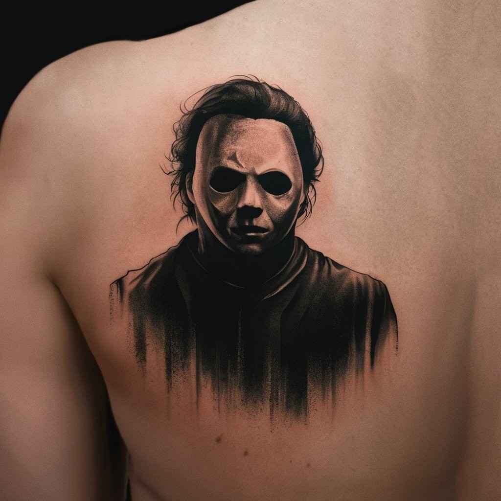 For fans of more classic and clean tattoos, a black and white portrait of Michael Myers is an ideal choice. The monochrome tones add an eerie, timeless feel. It’s a simple yet detailed design that can be small or large, fitting various body parts. It symbolizes the idea of life and death, and the balance between fear and fascination.