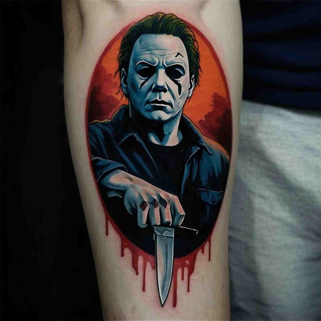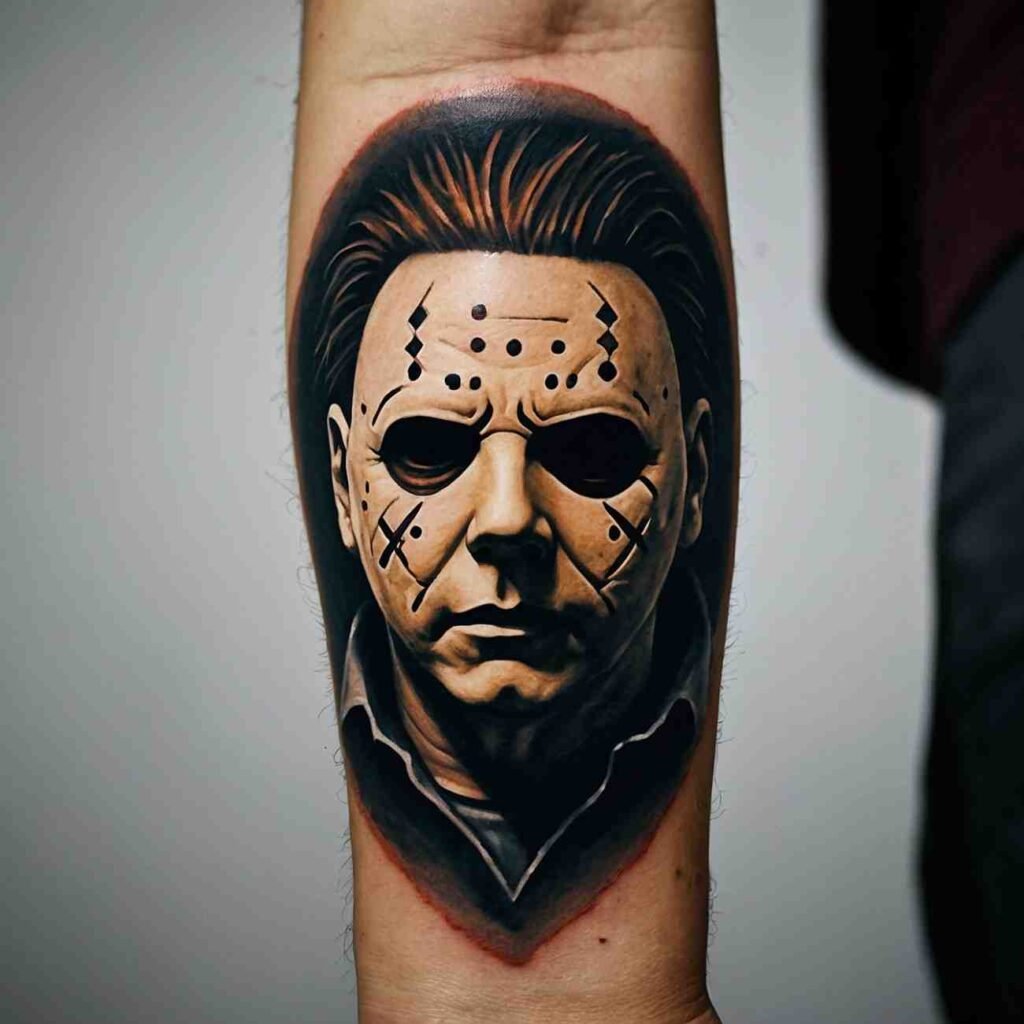 A tattoo featuring Michael Myers alongside other horror movie villains like Freddy Krueger or Jason Voorhees shows an admiration for the entire horror genre. It’s a tribute to the world of horror films and represents the wearer’s love for all things scary. Each character brings its own meaning, adding layers to the tattoo.