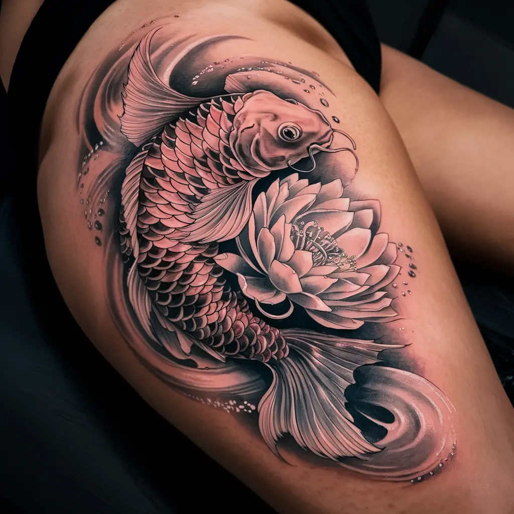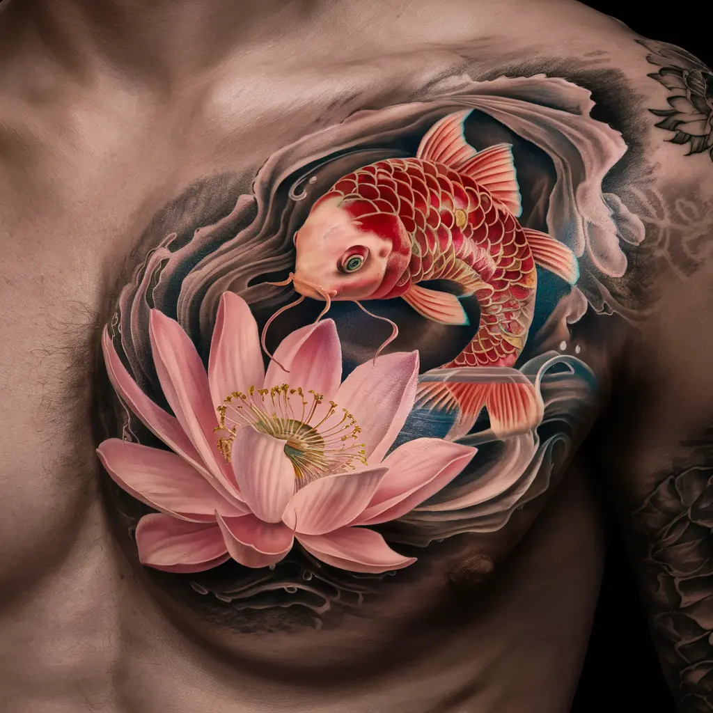 Combining the lotus flower and koi fish creates a beautiful and meaningful design. The koi fish represents strength, perseverance, and transformation, while the lotus flower symbolizes spiritual awakening.