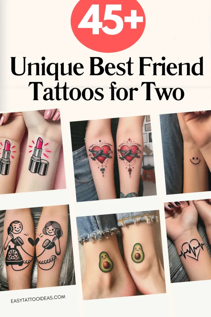 If you and your best friend are thinking about getting tattoos, you’re in the right place! Below are unique and creative tattoo ideas for best friends that will truly represent the special connection you share. These tattoo ideas are simple, meaningful, and perfect for marking your lifelong bond. Whether you’re into minimalist designs or something more detailed, there’s a tattoo idea here for every friendship.
