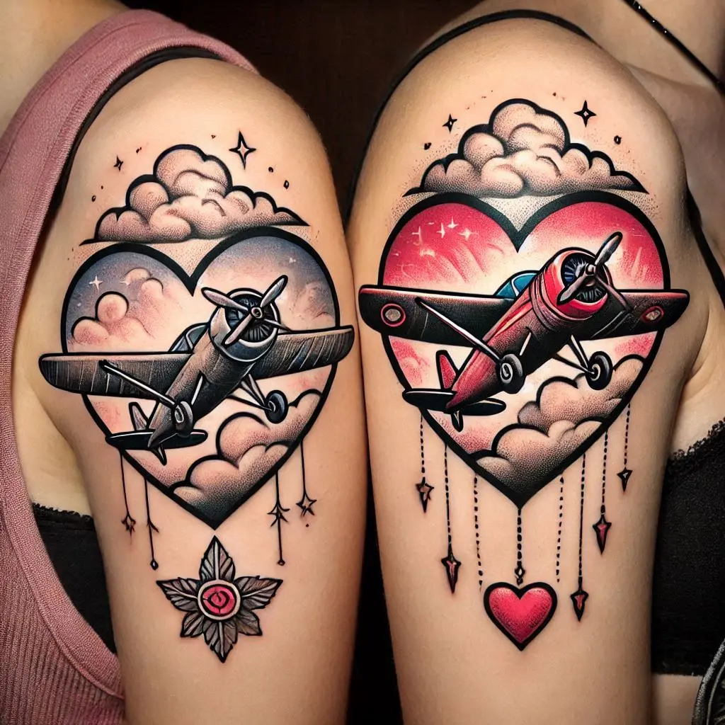 If you and your best friend have a love for travel, adventure, or simply share a dream of exploring the world together, the Heart with a Plane Tattoo might be perfect for you. This tattoo features a simple yet powerful design—a heart with an airplane flying around it or soaring above it.